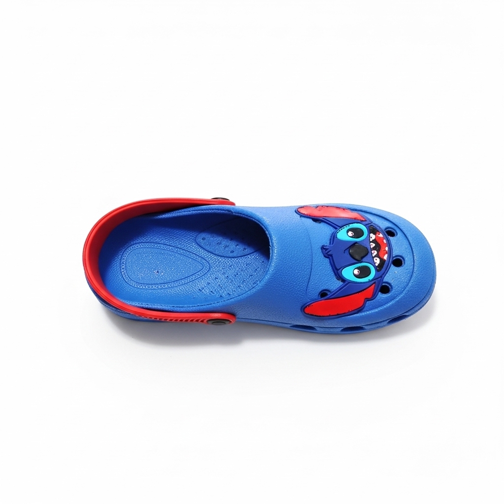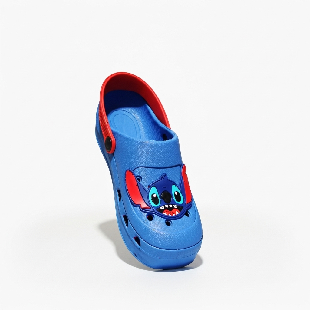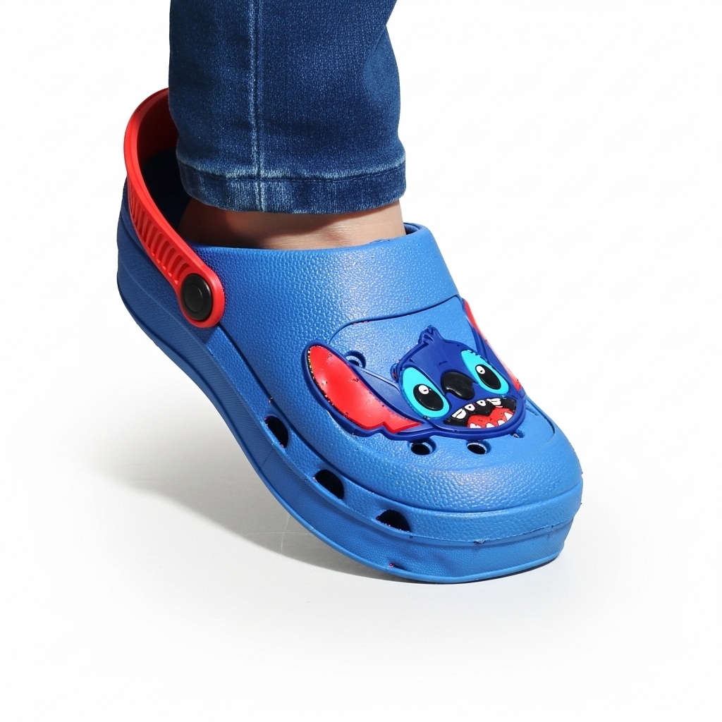 • Detalhe Lúdico: O destaque principal é o grande aplique 3D emborrachado do personagem Stitch (da Disney) na parte superior do cabedal.