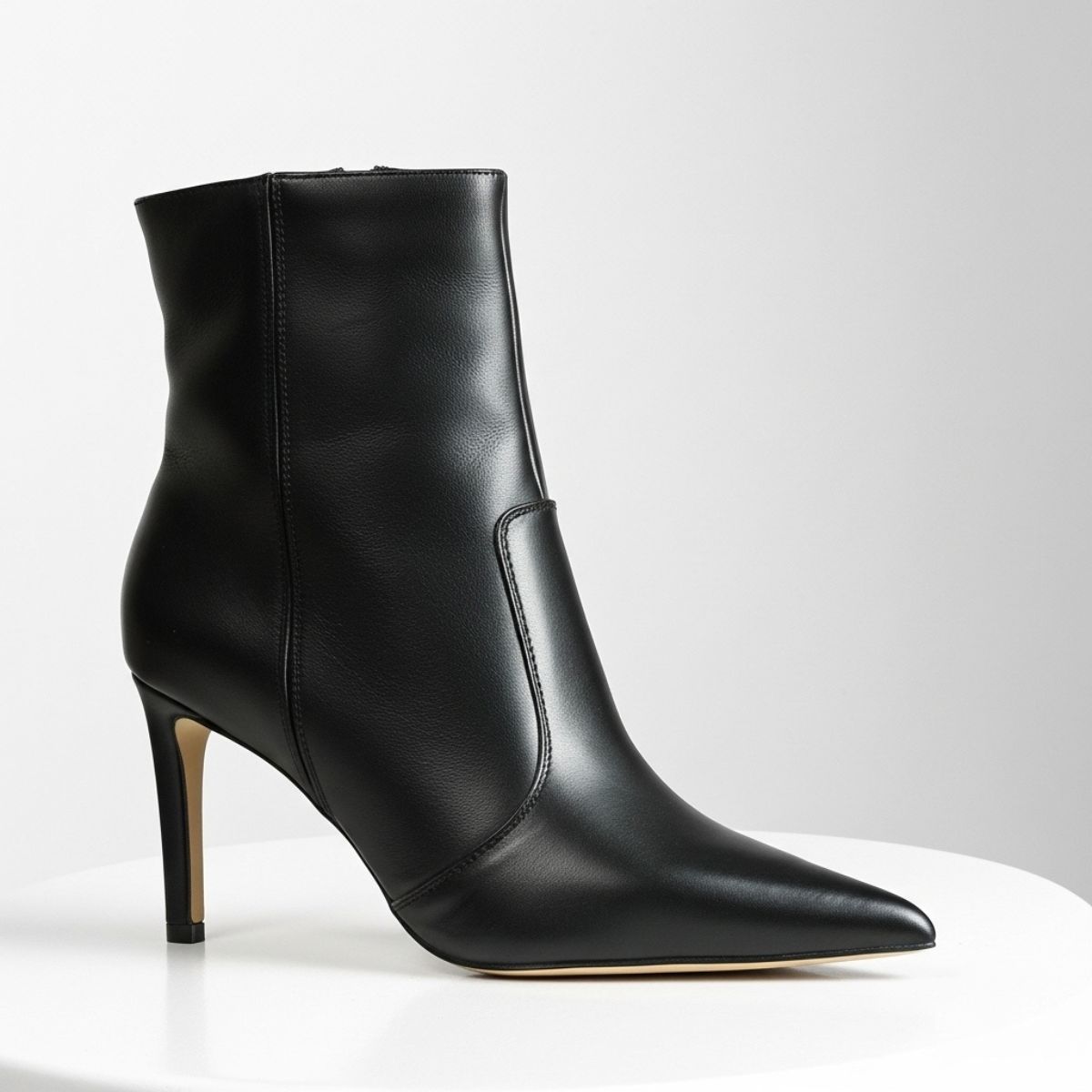Descrição: Uma peça essencial e atemporal no guarda-roupa feminino. Esta bota ankle boot de cano curto combina elegância e sofisticação em um design minimalista. Confeccionada em couro (ou material sintético de alta qualidade) com acabamento liso, ela desenha uma silhueta poderosa e feminina.