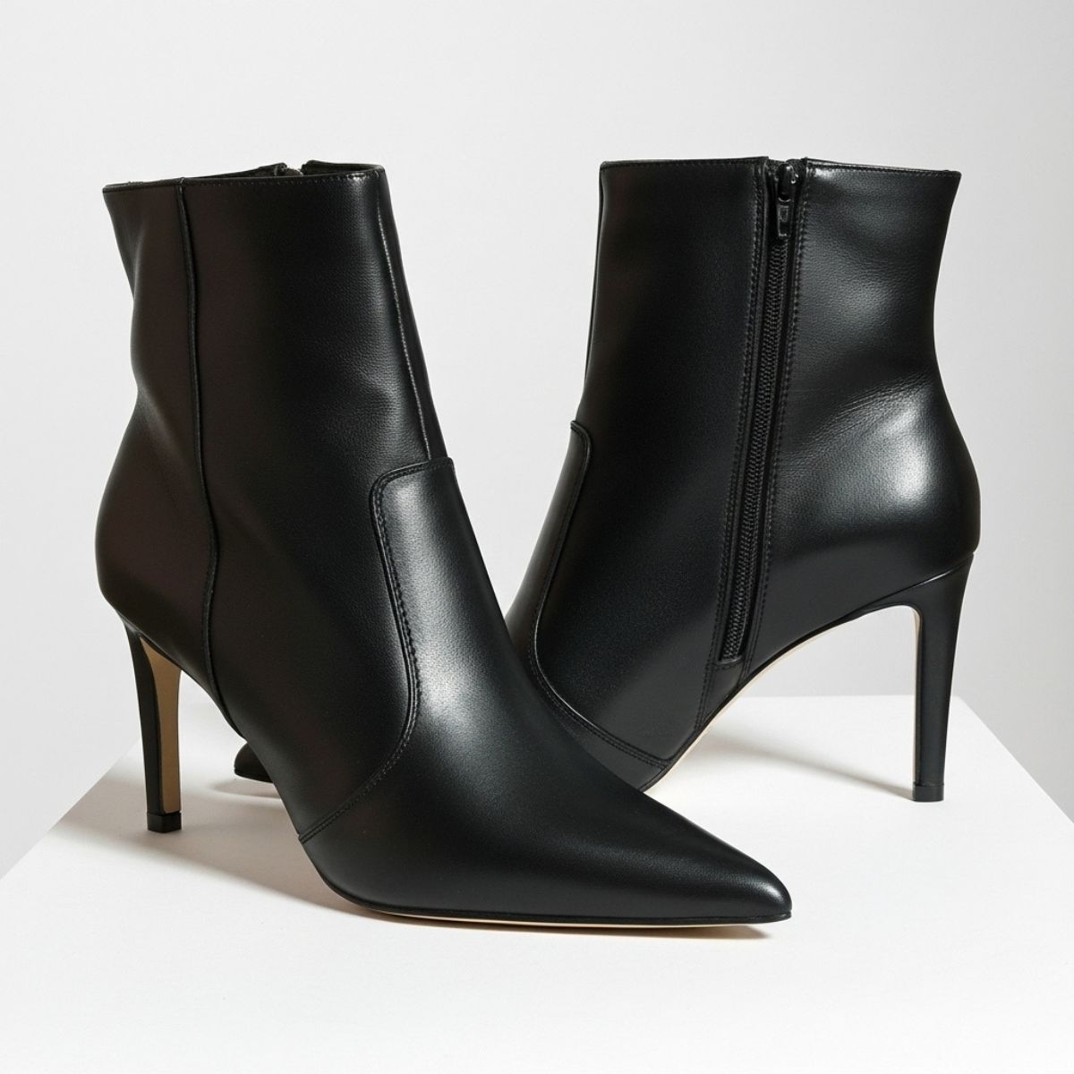 O bico fino alonga as pernas, enquanto o salto alto stiletto (fino) confere um toque de glamour e postura. Com um design limpo e sem detalhes excessivos, possui um zíper discreto na lateral interna para garantir um ajuste perfeito e facilitar o calce.