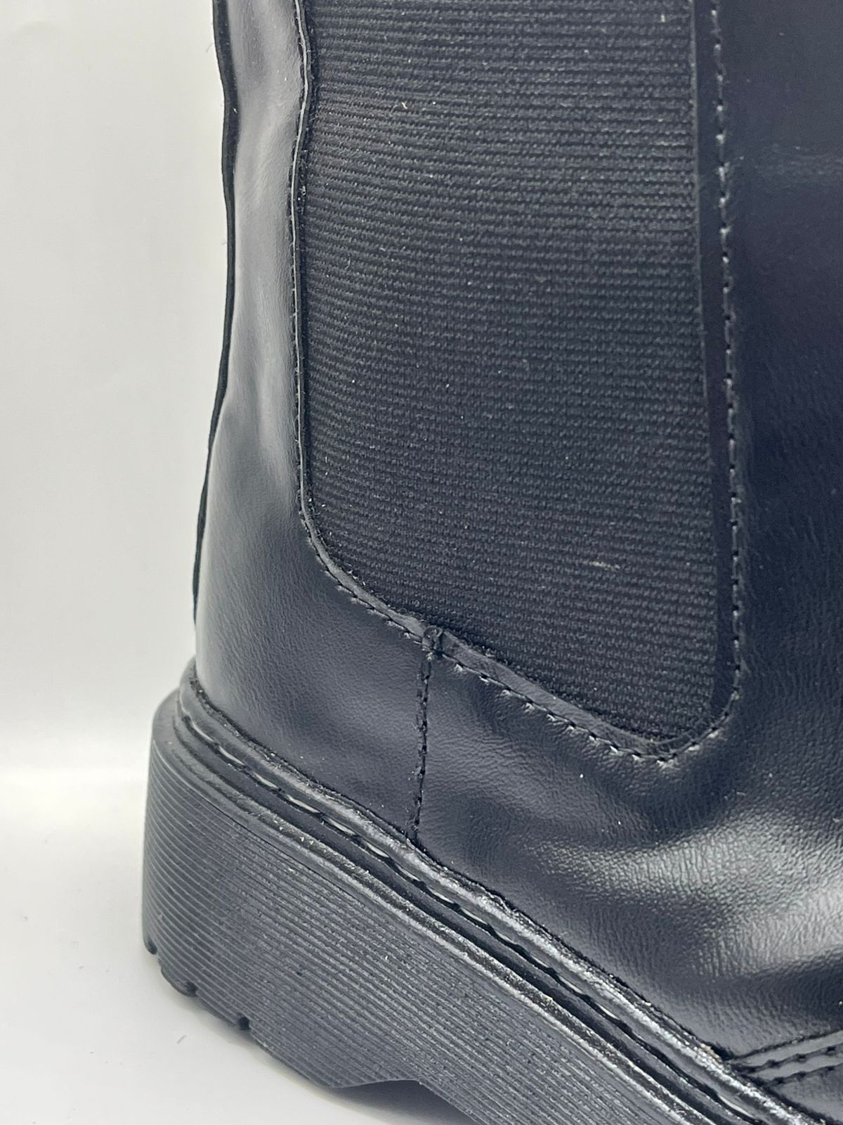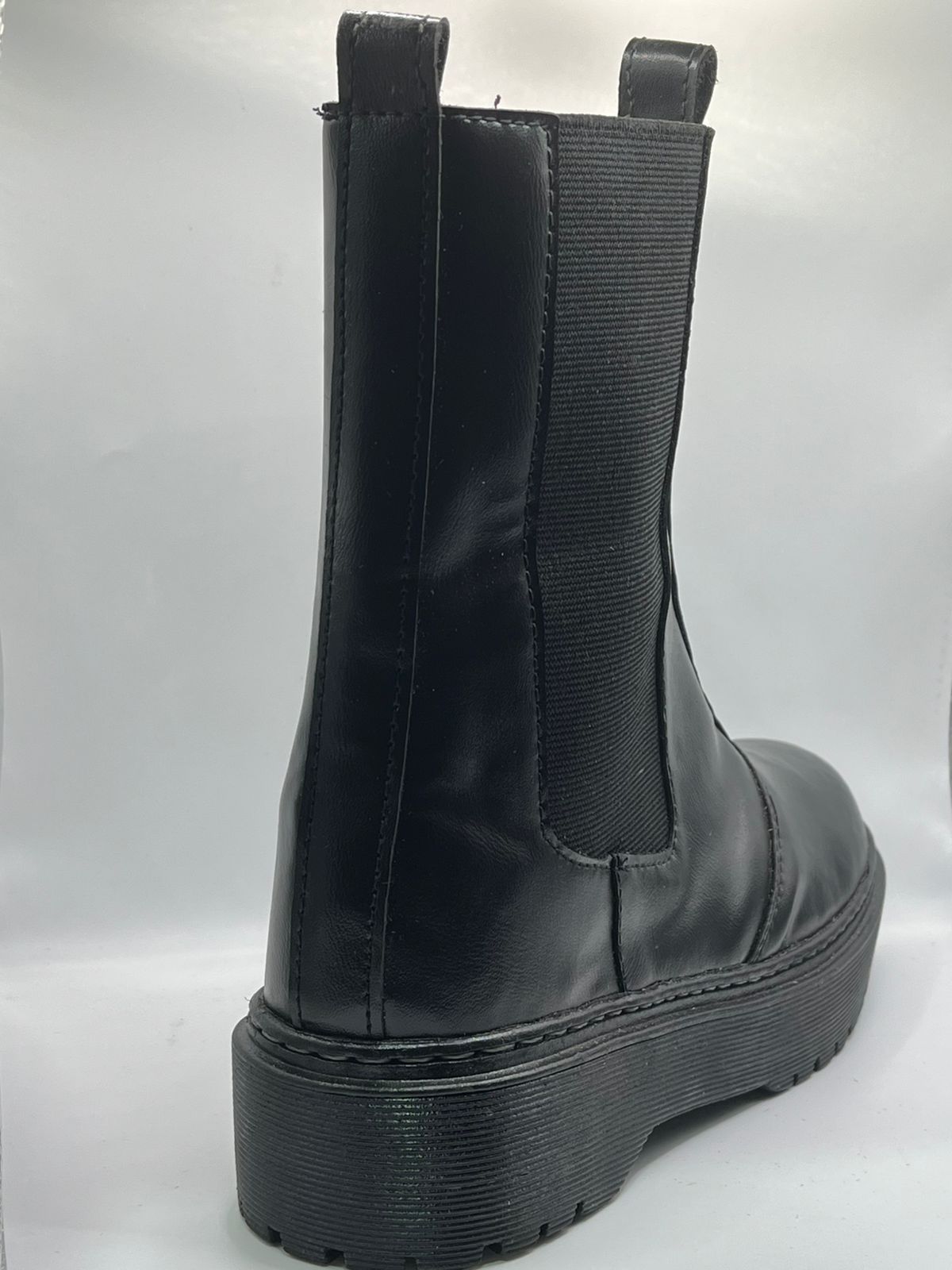 Seu design híbrido é o grande destaque: ela conta com um zíper interno que facilita o calce e um painel de elástico na lateral externa (inspirado nas clássicas botas Chelsea) que garante um ajuste perfeito e confortável ao tornozelo. A sola plataforma tratorada não só adiciona centímetros de altura, mas também oferece estabilidade e uma pegada urbana inconfundível.