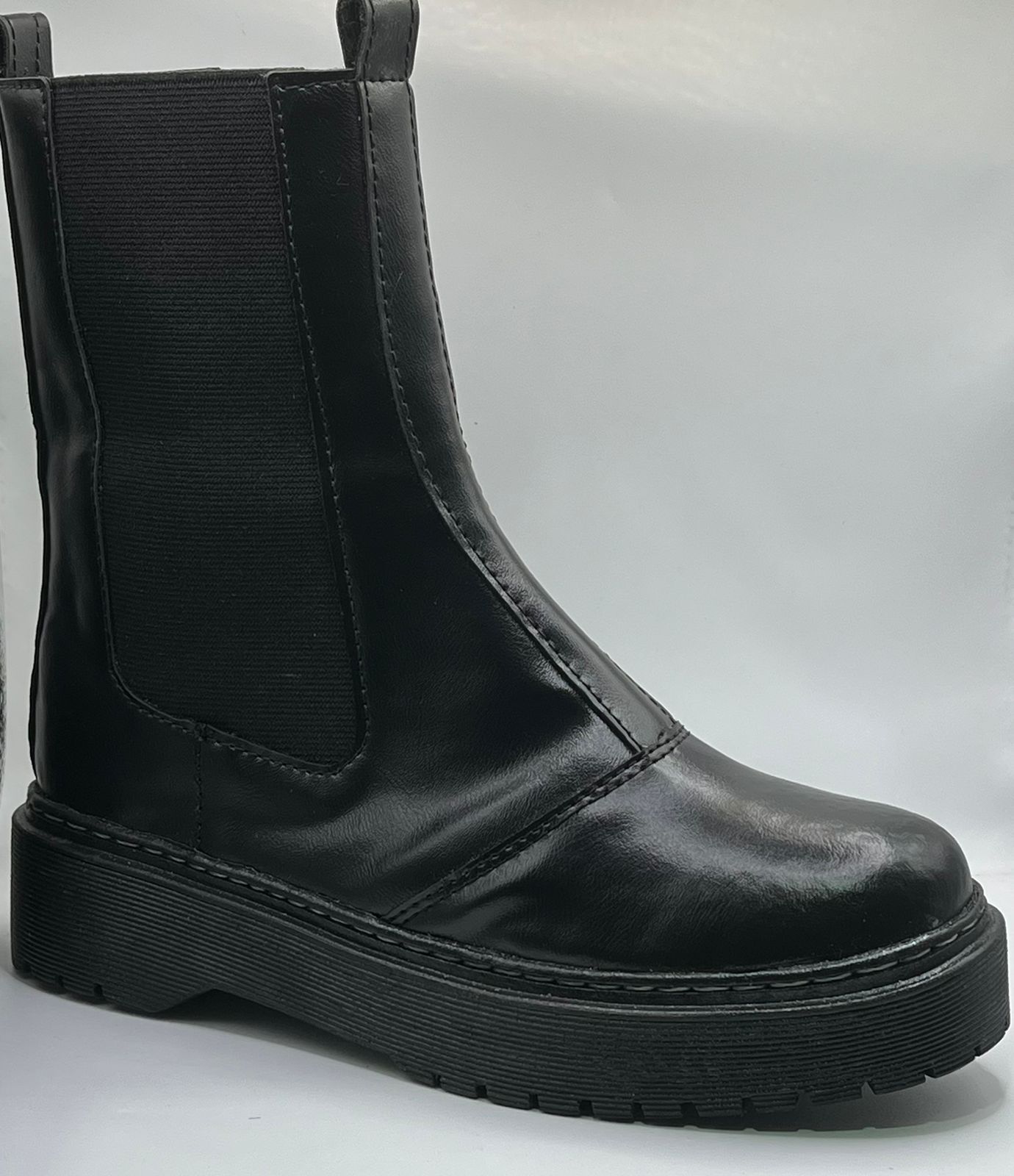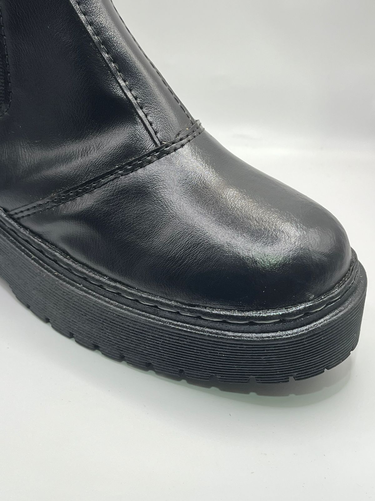 Design Moderno: O acabamento liso em preto e a robusta sola plataforma tratorada criam um visual contemporâneo e cheio de personalidade.