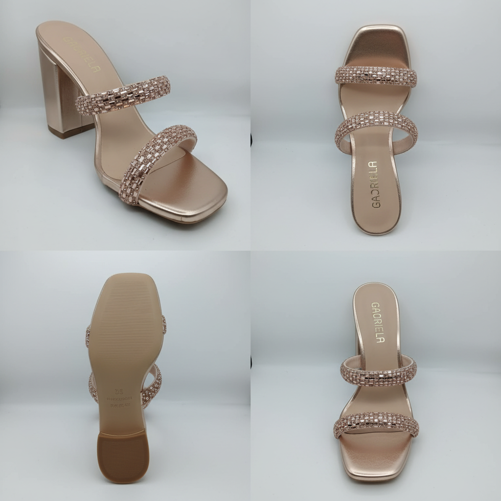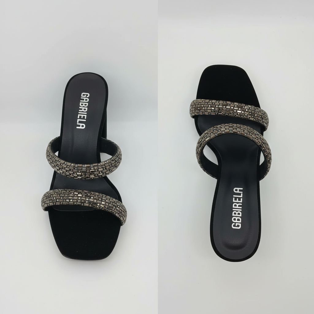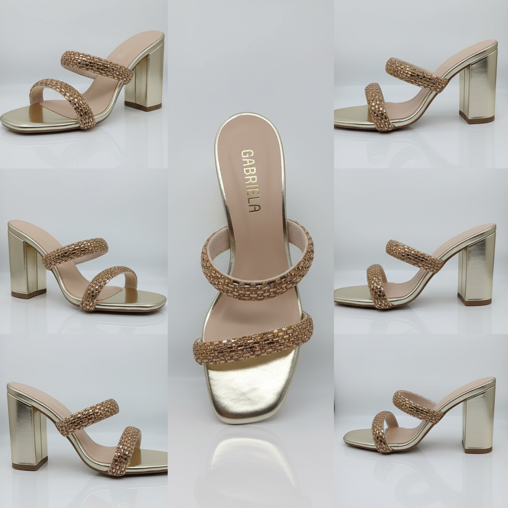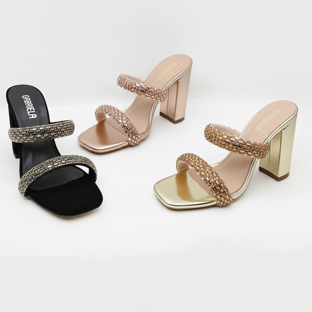 O brilho que você procurava para elevar suas produções noturnas chegou. O Tamanco Gabriela é a união perfeita entre o glamour das pedrarias e o conforto do salto robusto. Projetado para a mulher que quer destacar-se, este modelo transforma qualquer look básico em uma produção de luxo.