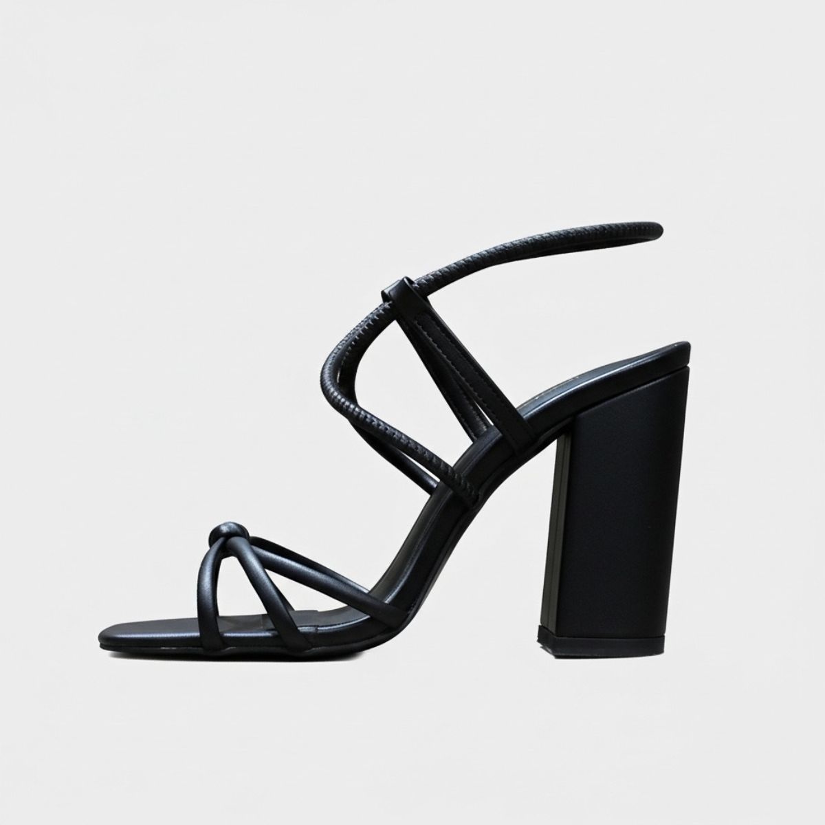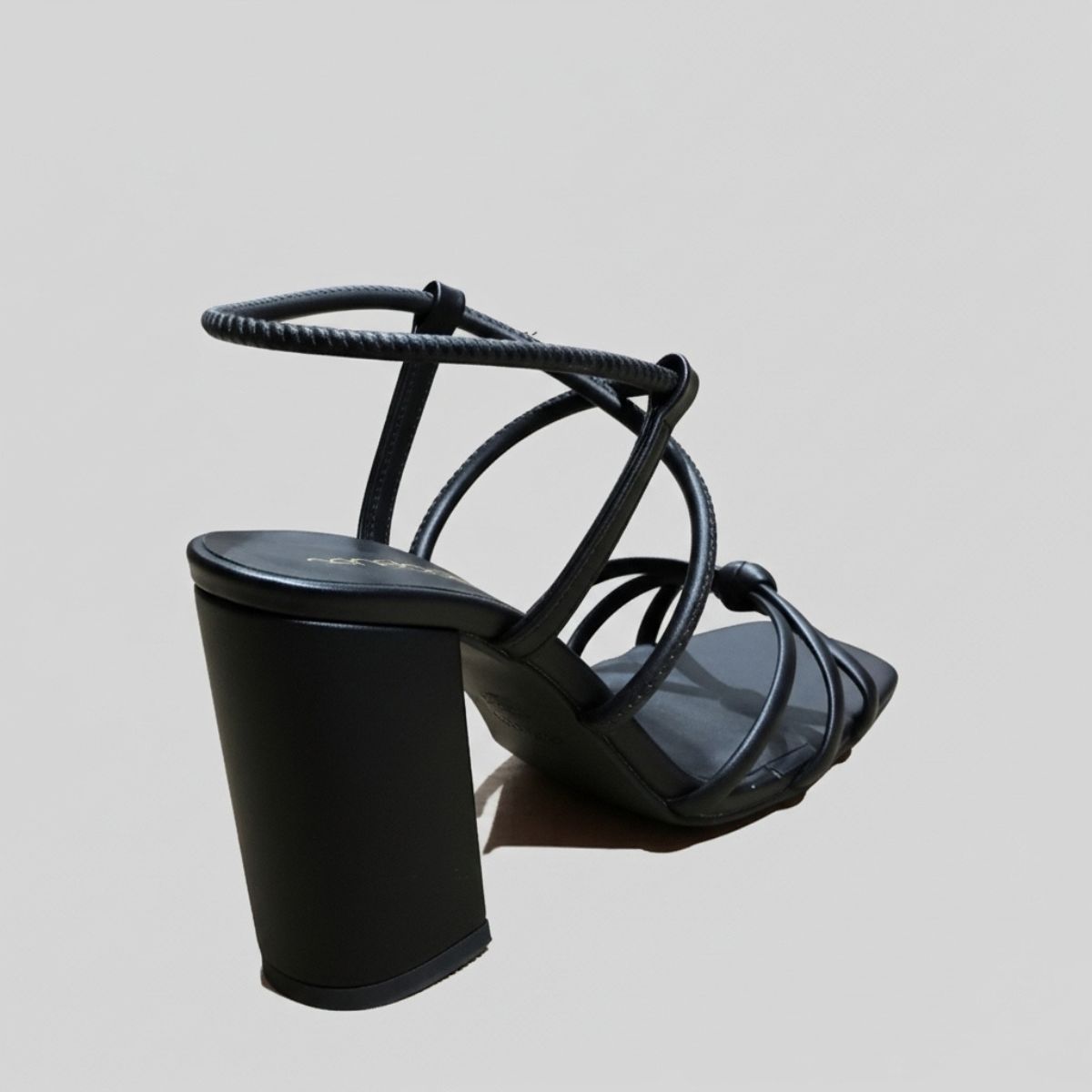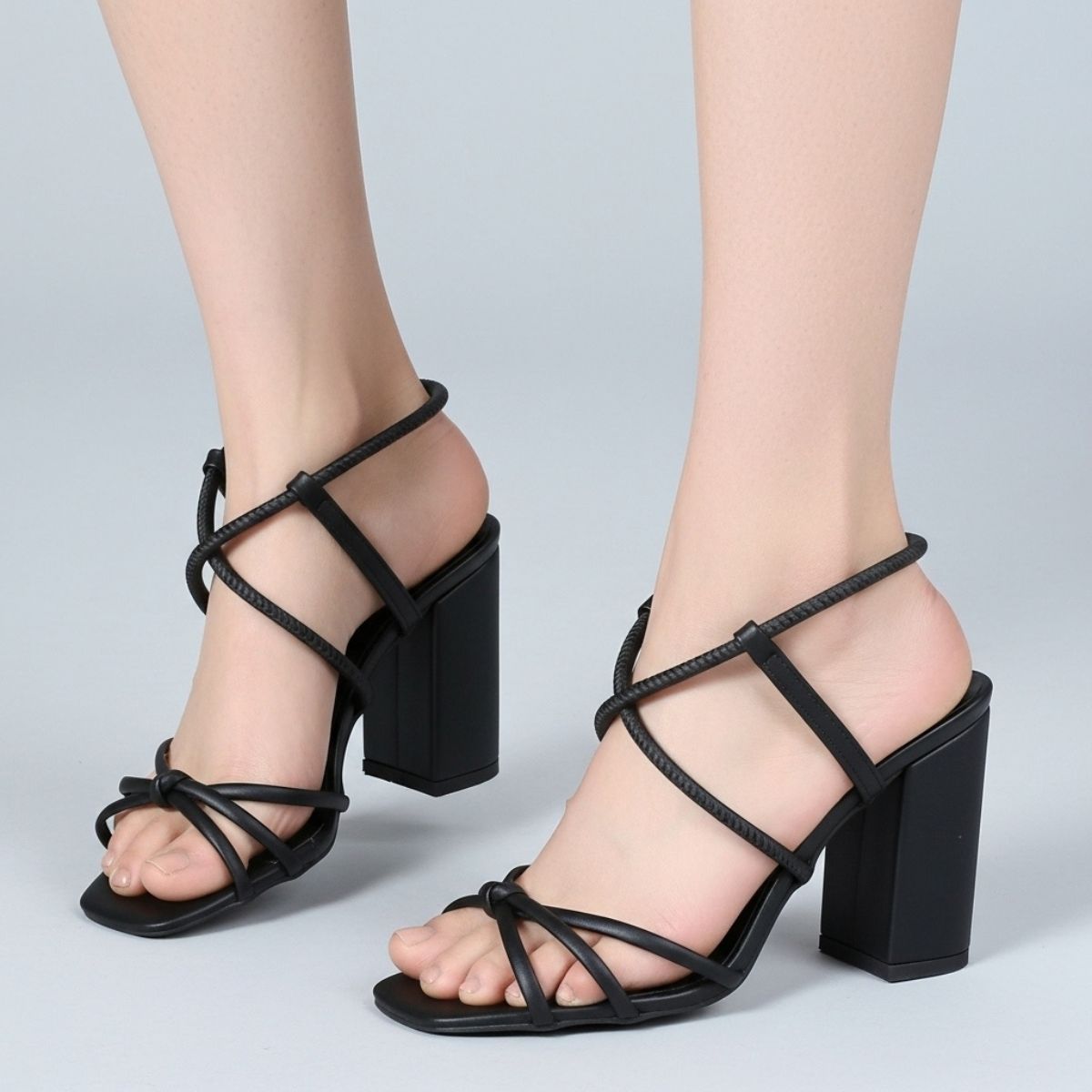 Tiras Múltiplas e Nó: O design é marcado pelas tiras finas e delicadas. Na parte frontal, elas criam um detalhe de nó charmoso. No tornozelo, as tiras se estendem, podendo ser ajustadas ou usadas como amarração (se houver amarração, mas pelas fotos parece ser tira fixa com fivela) ou como abraço no pé.