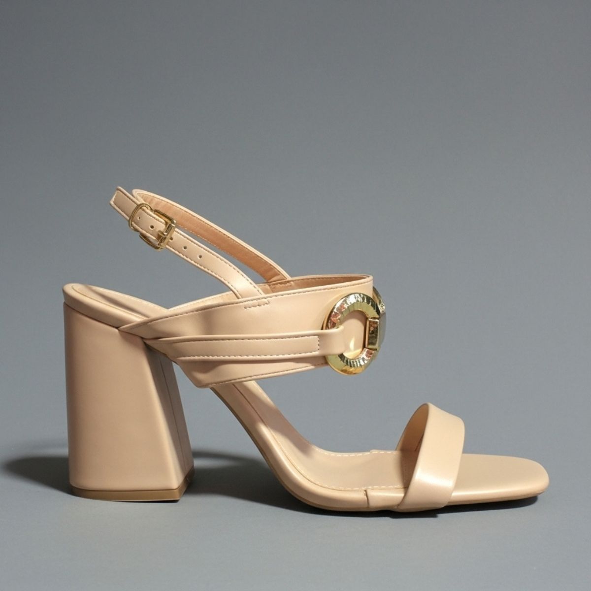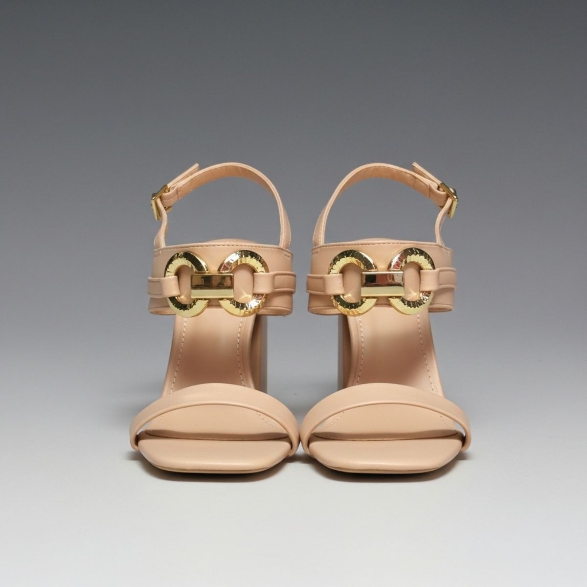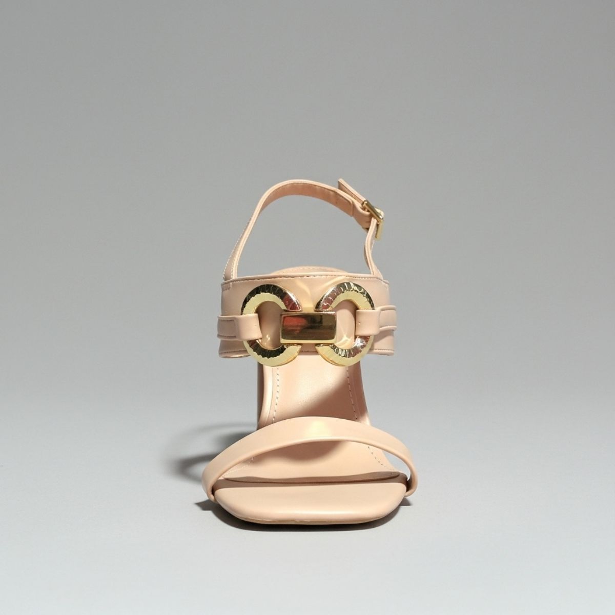 Detalhe de Destaque: A sandália é marcada pelo seu adorno de elos/corrente na lateral do tornozelo, um toque que confere luxo e modernidade ao design.