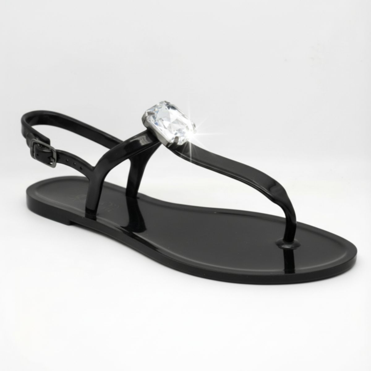 Sandália Rasteira Jelly Preta com Maxi Cristal