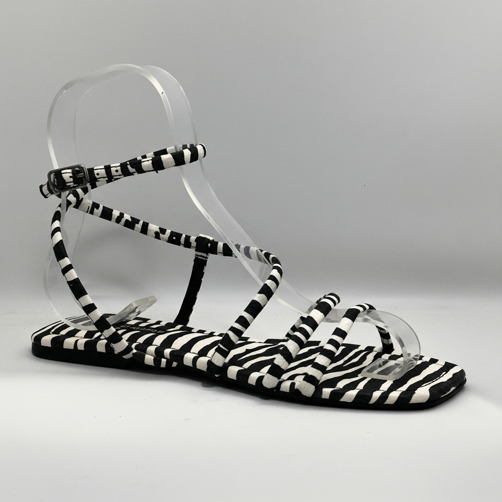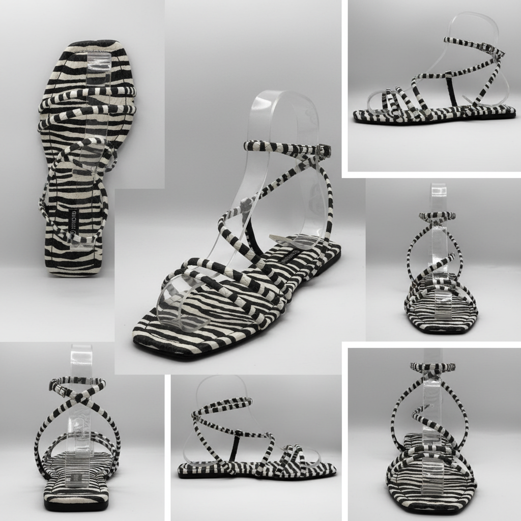 Sandália Rasteira Strappy P&B Estampa Zebra com Bico Quadrado