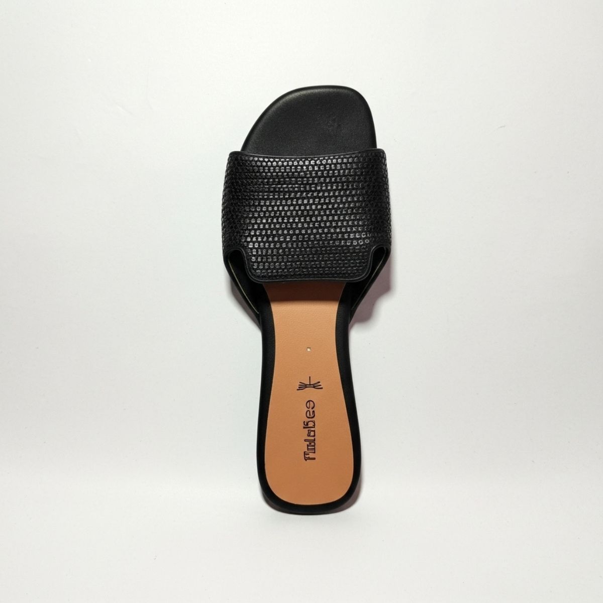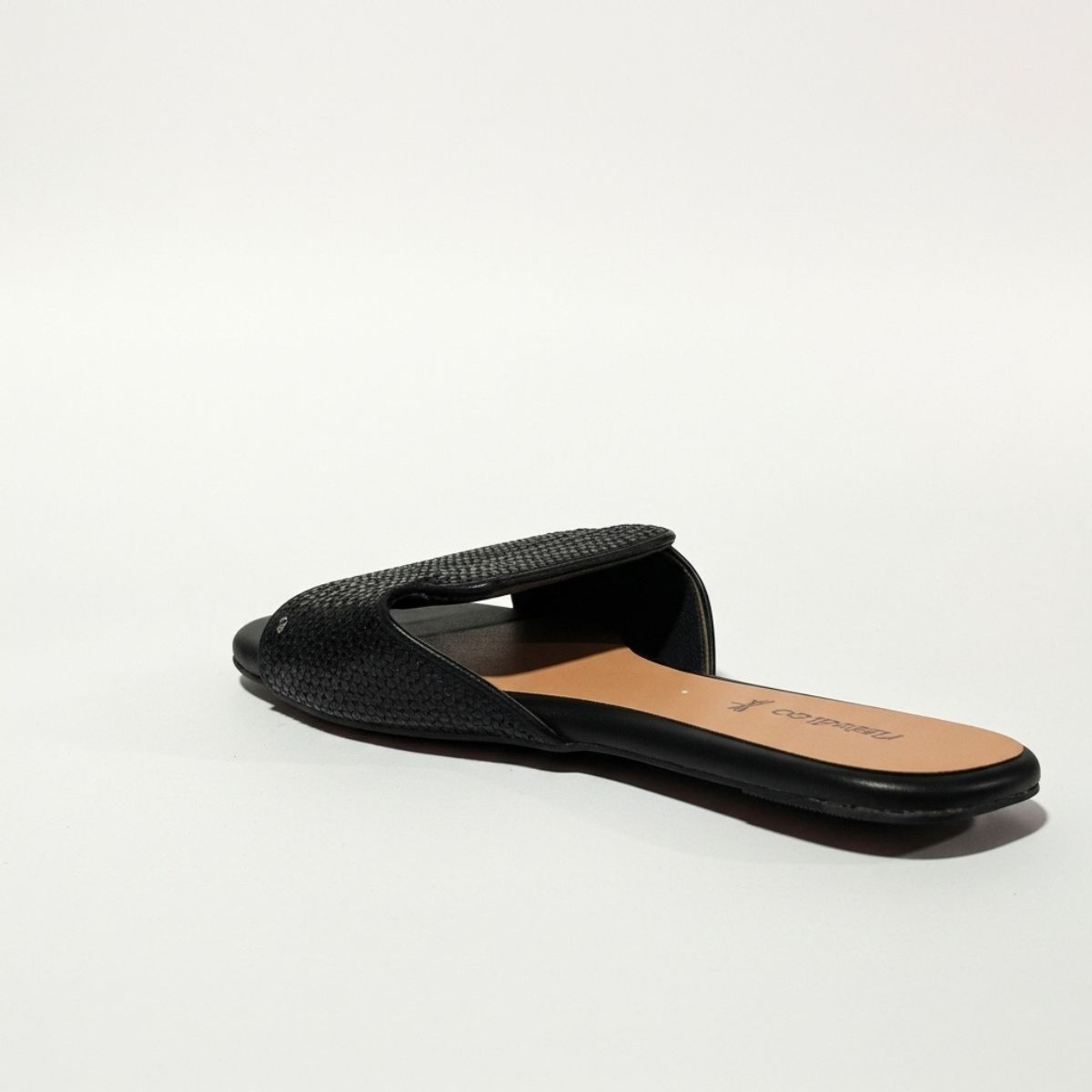 • Solado: Solado rasteiro (flat) fino e flexível na cor preta, em material antiderrapante.