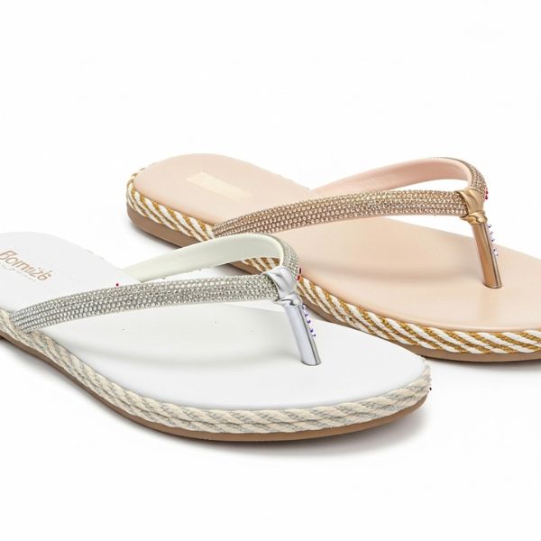 Esta rasteirinha foi desenhada para a mulher que não abre mão do conforto, mas exige estilo em cada detalhe. O modelo flip-flop (de dedo) ganha uma repaginada luxuosa, transformando uma peça básica em um acessório de destaque.