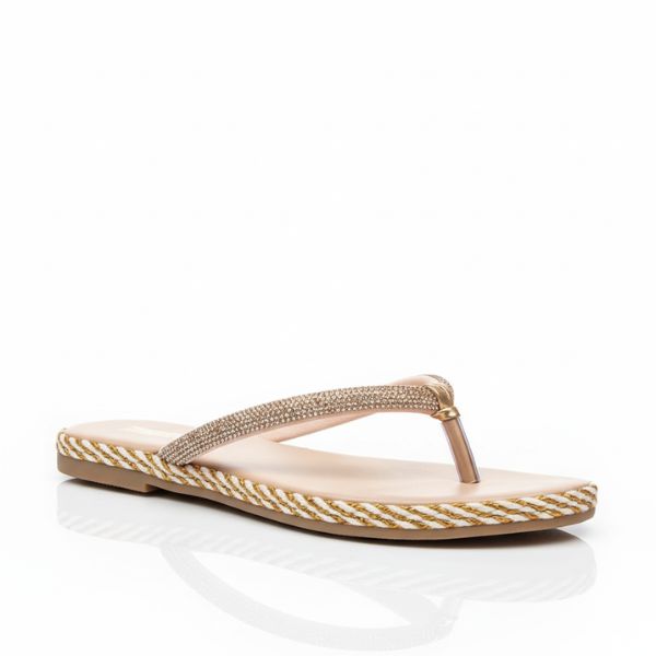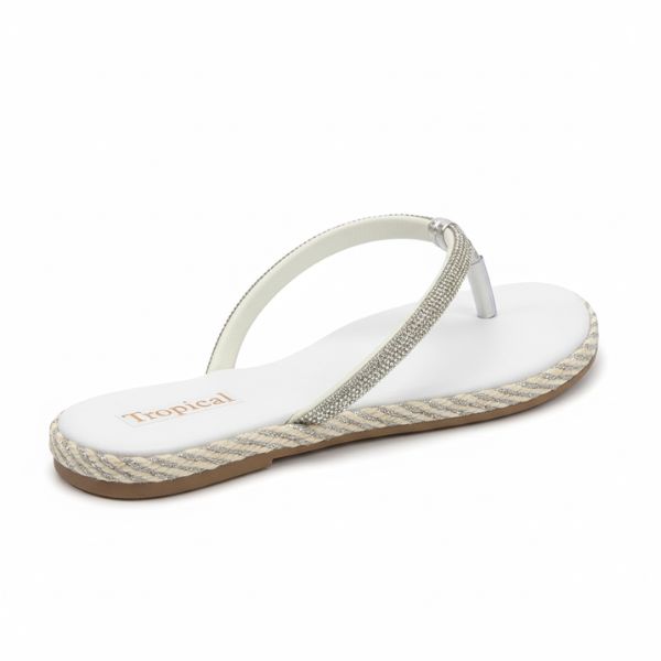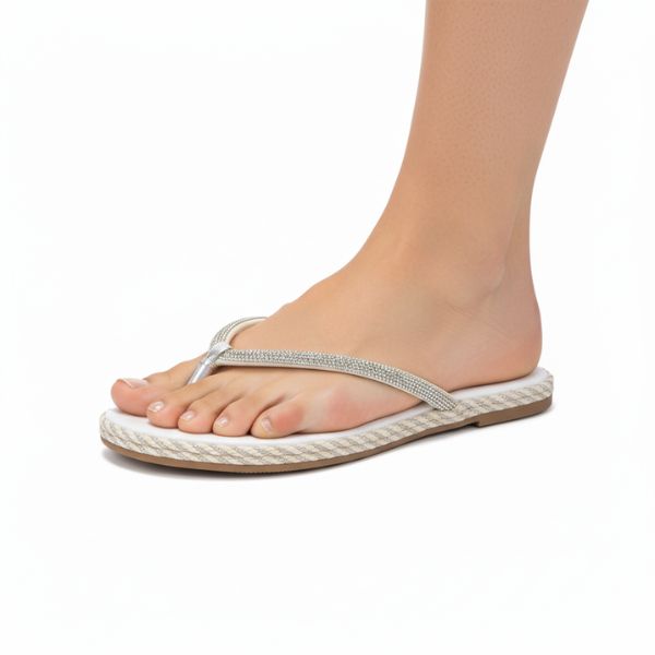 Rasteirinha Flat Glamour: Tiras em Strass e Acabamento em Corda