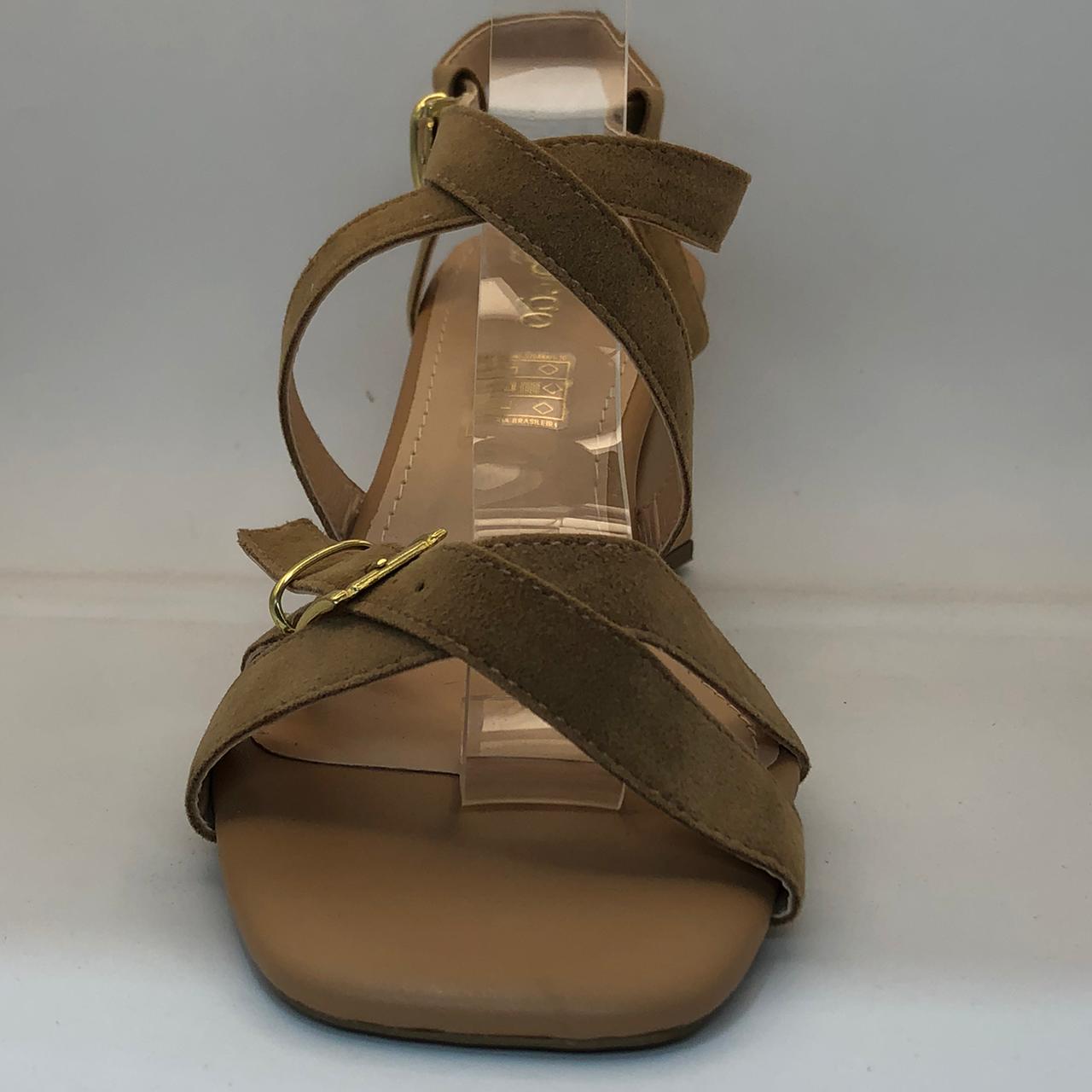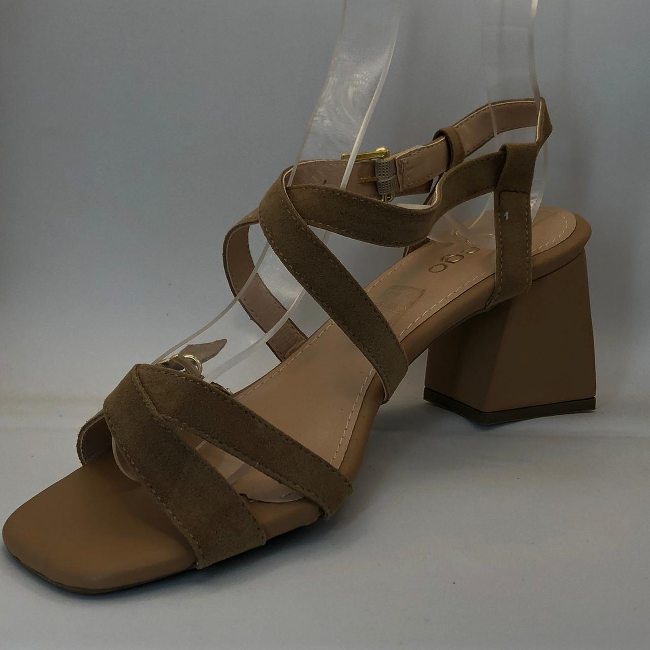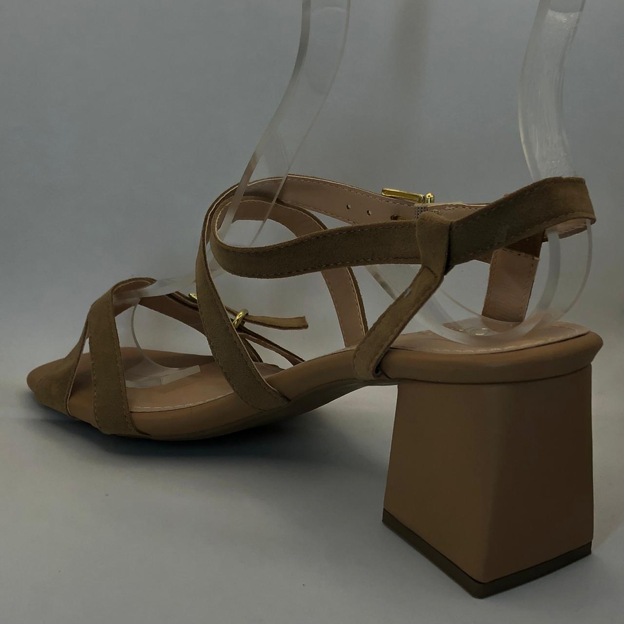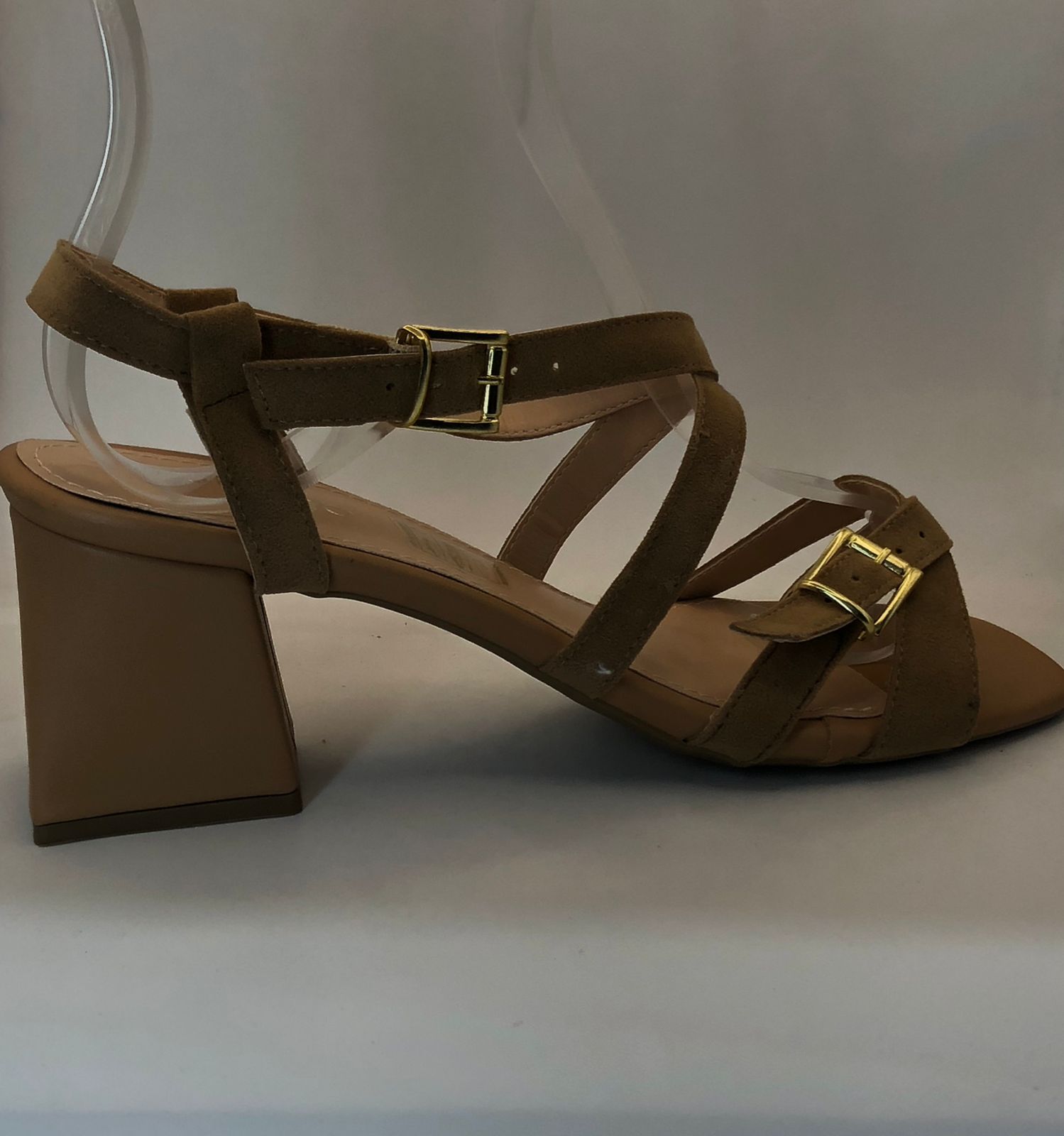 Sandália Feminina Salto Bloco Médio acabamento Nobuck (Camurça) com Fivelas Douradas