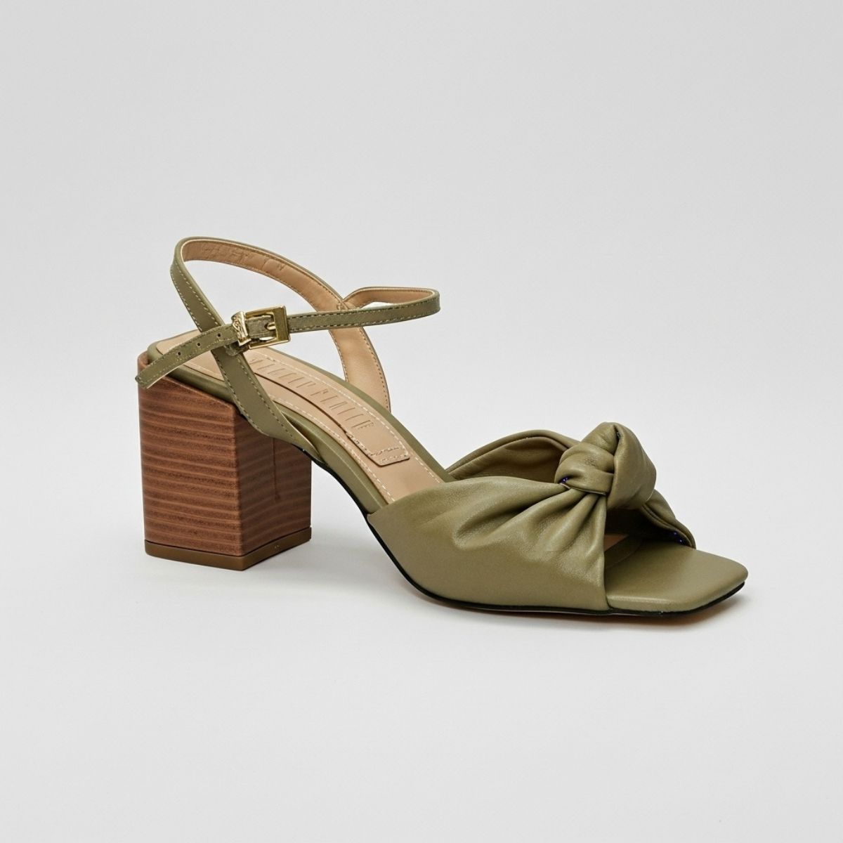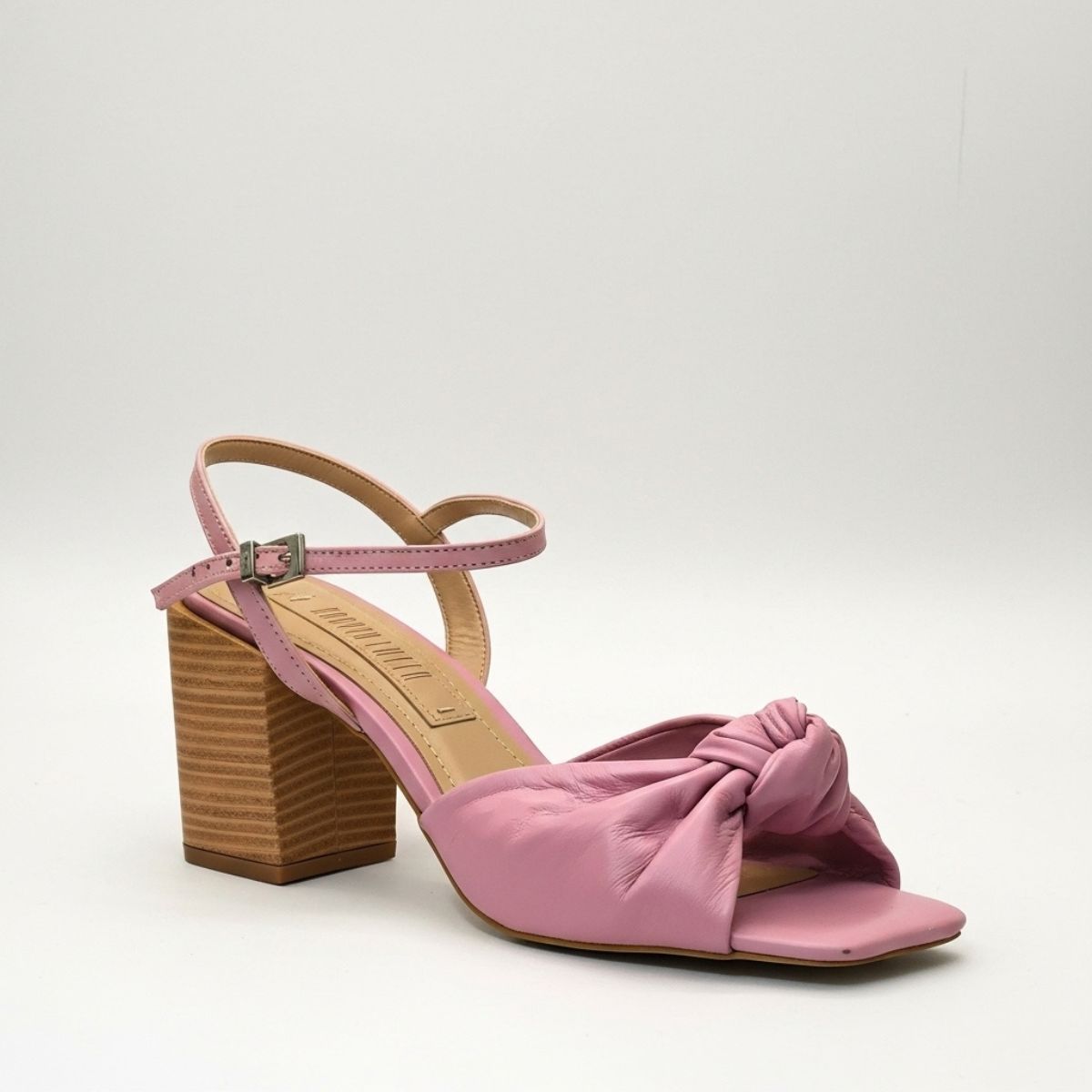 Sandália Feminina Santa Lolla Salto Bloco Fachetado com Detalhe de Nó Frontal e Bico Quadrado