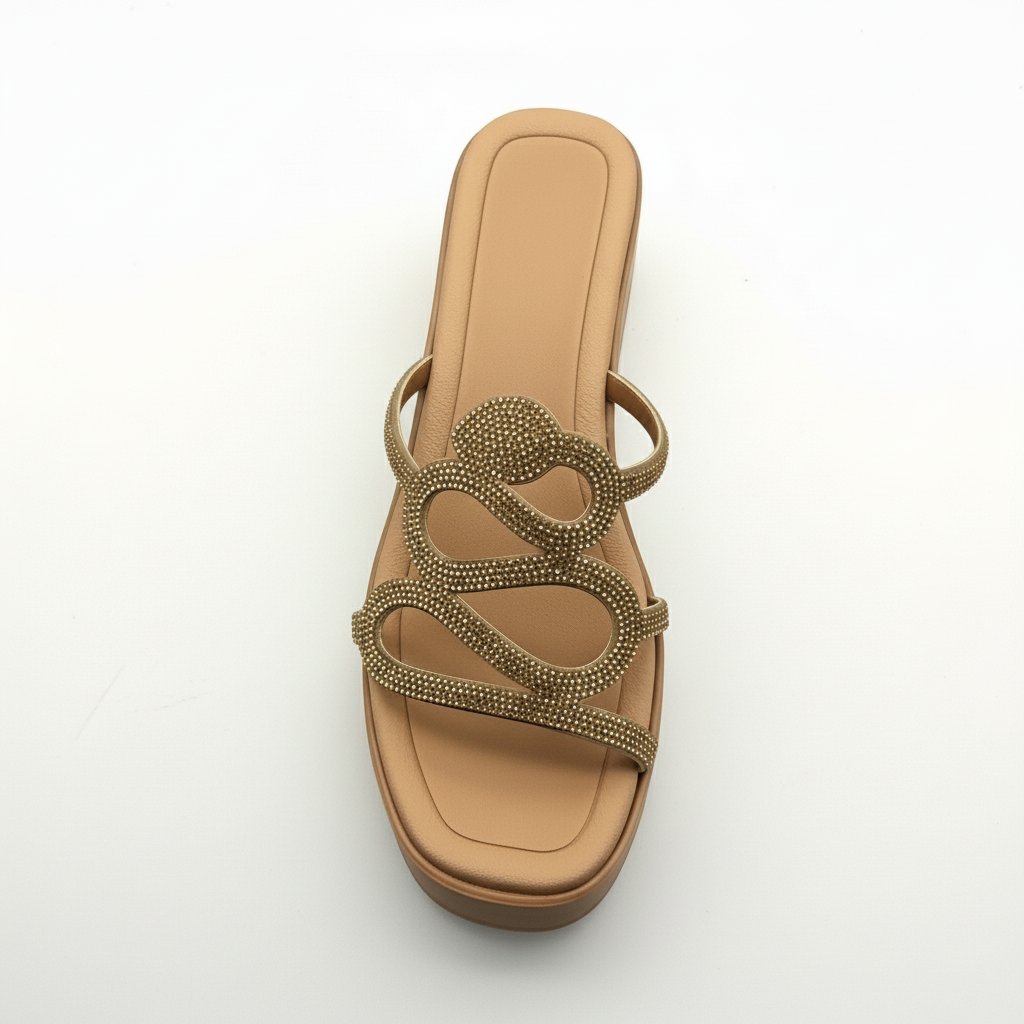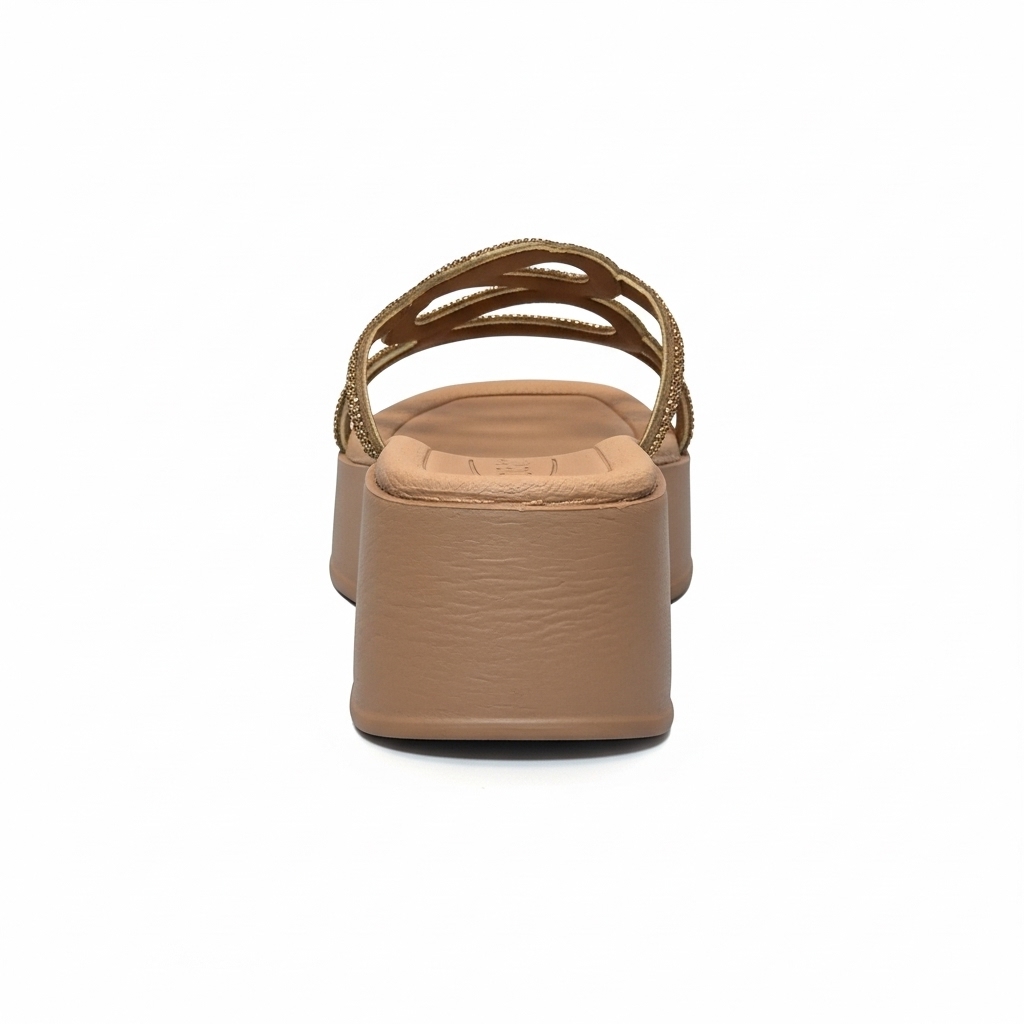 Tamanco Feminino Beira Rio Flatform (Plataforma) Nude com Tiras em Strass Brilhante