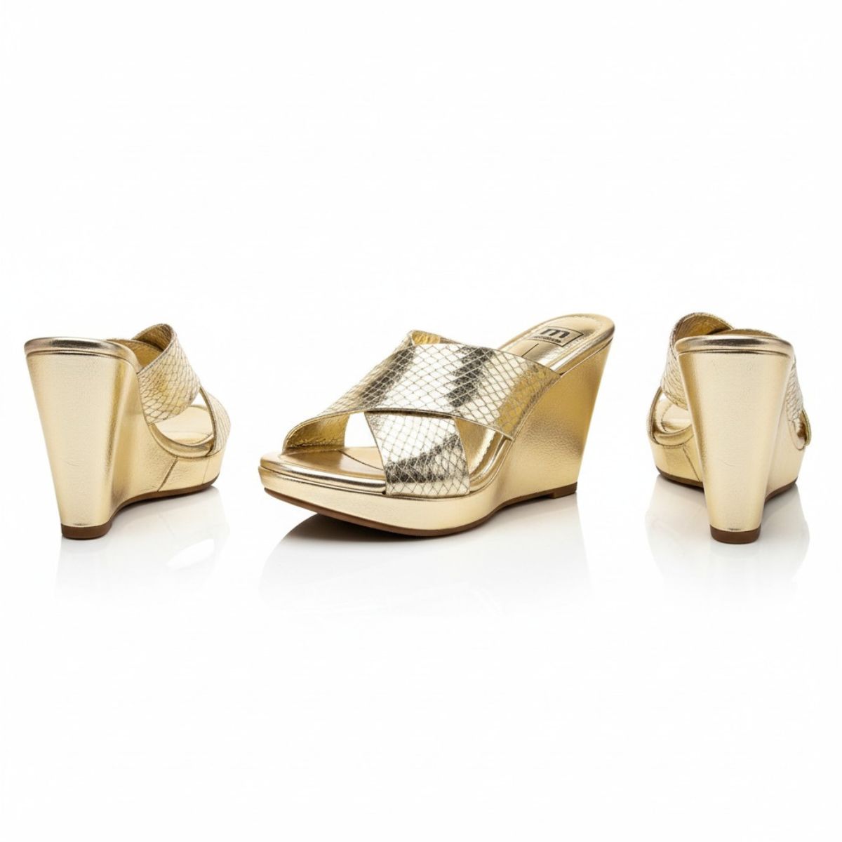 Garanta praticidade e muito brilho para os seus dias com o *Tamanco Anabela Moleca Dourado*. Conhecida pelo conforto absoluto, a Moleca traz neste modelo a união perfeita entre estabilidade e moda.
