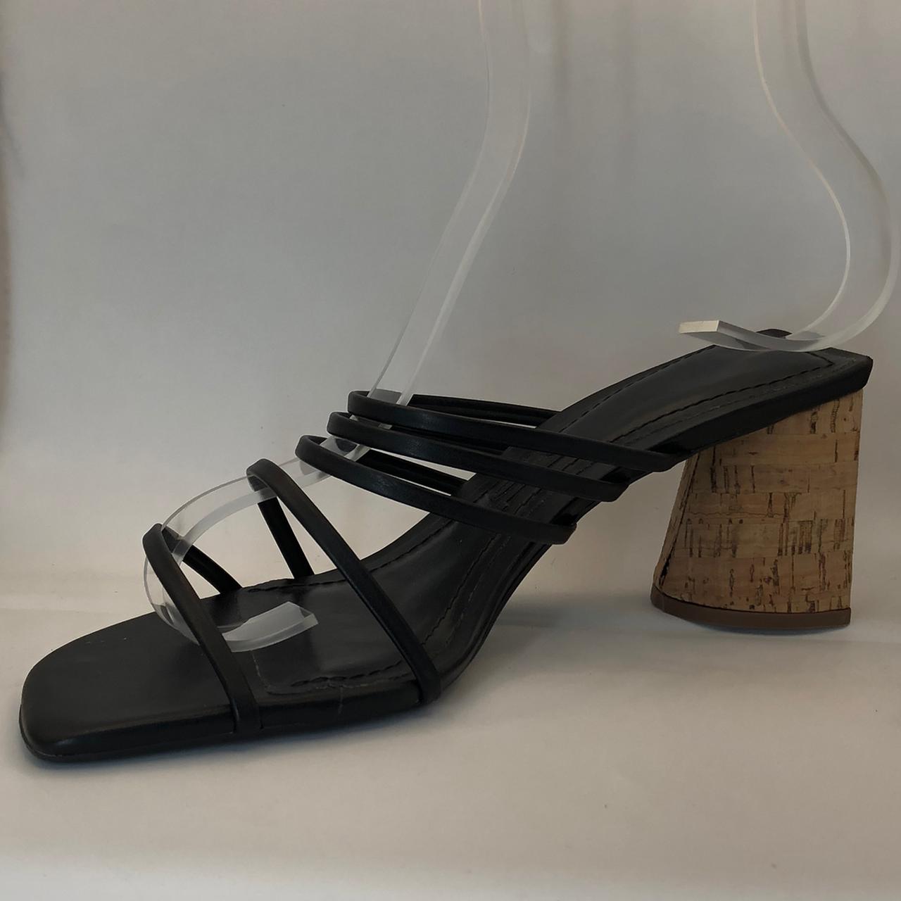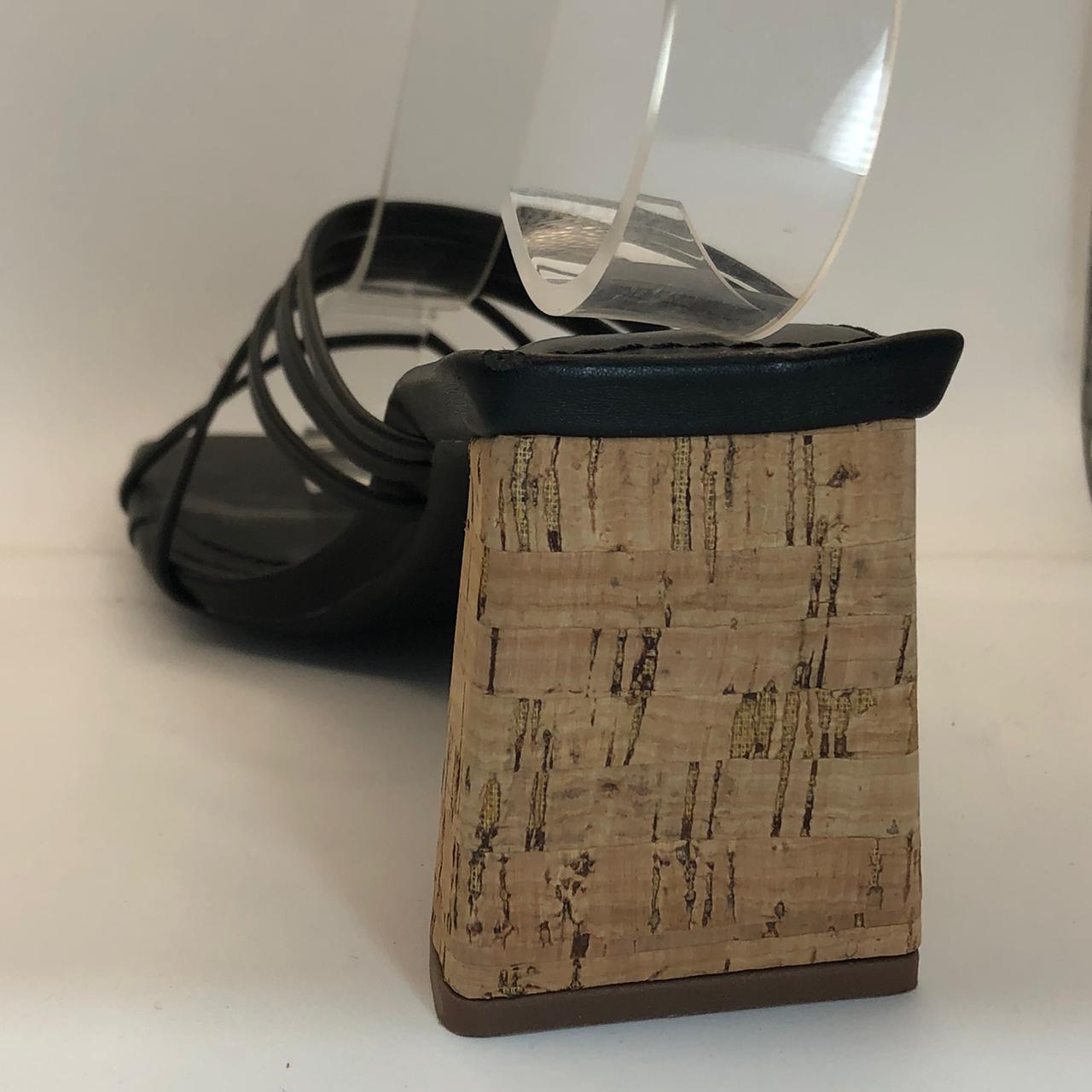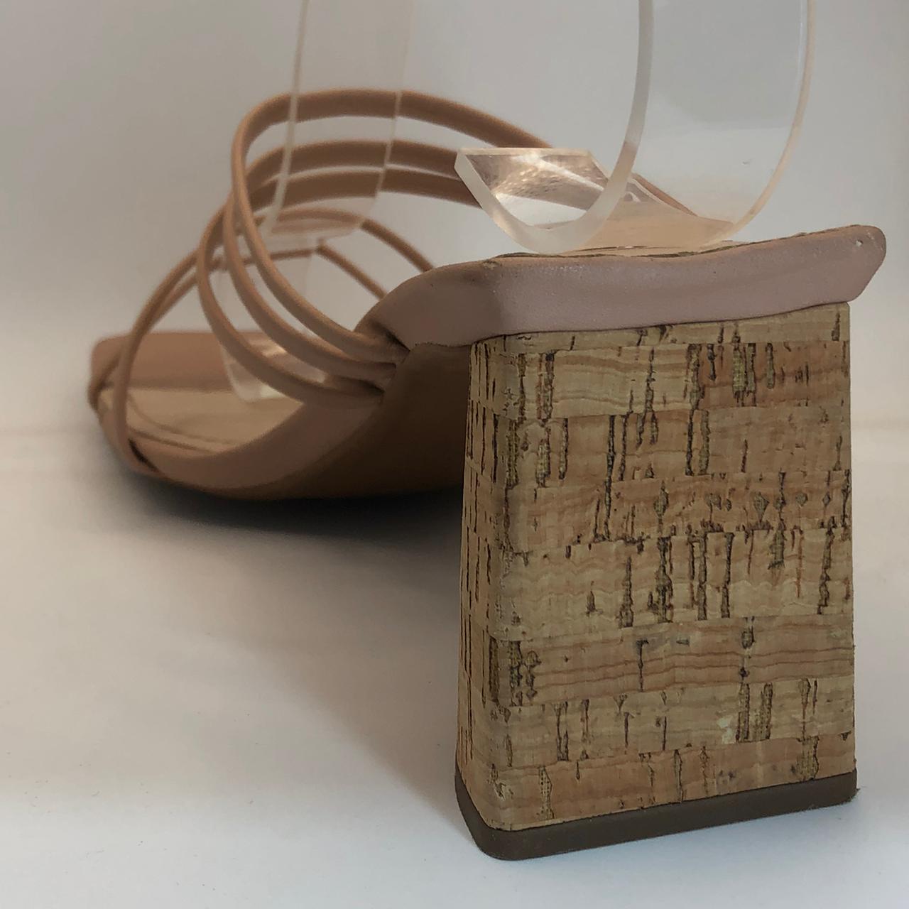 Sandália Tamanco Mule Salto Bloco em Cortiça com Tiras Finas e Bico Quadrado