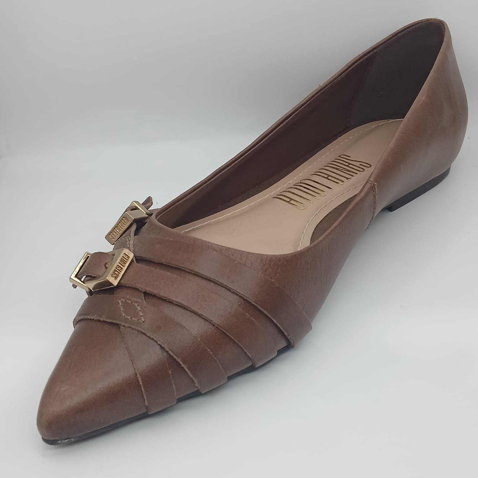 Sofisticação e atitude definem esta sapatilha da *Santa Lolla. Perfeita para a mulher moderna, ela combina a elegância atemporal do **bico fino* com um design cheio de personalidade. No clássico e versátil tom de *marrom*, esta peça é um verdadeiro coringa para compor looks poderosos.