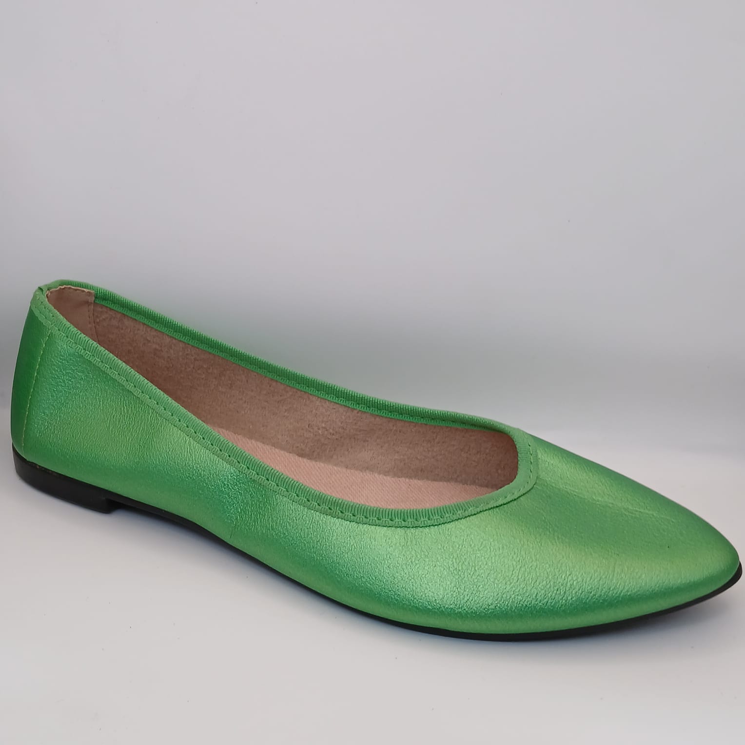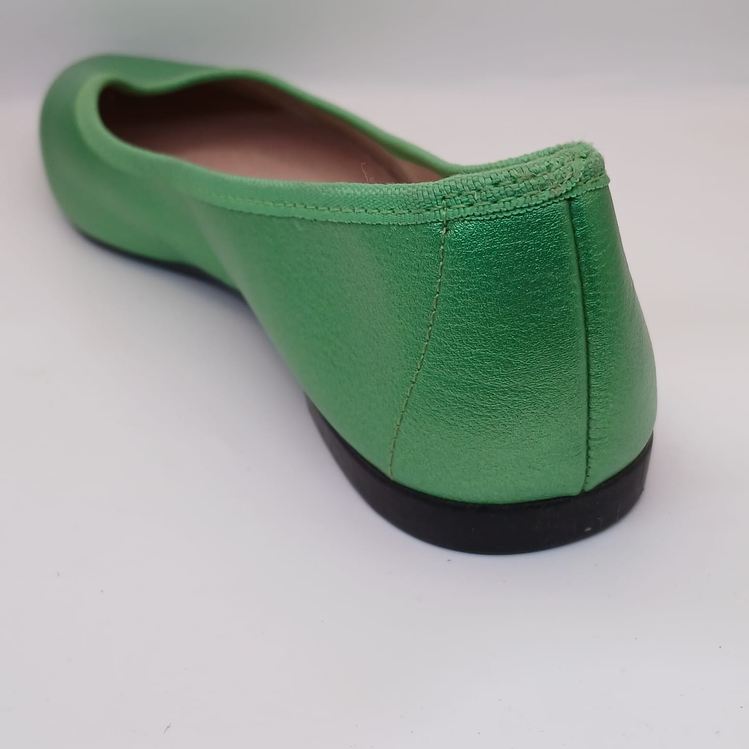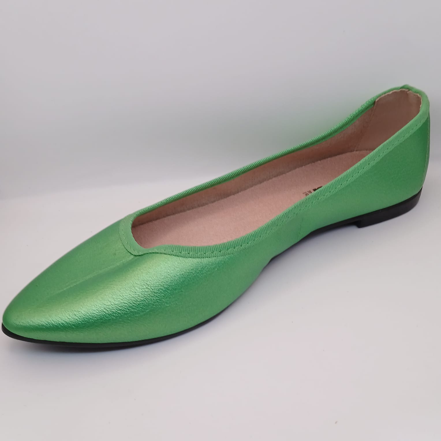 Adicione um ponto de cor poderoso e cheio de estilo ao seu visual com esta sapatilha flat. Em um vibrante tom de *verde-bandeira com acabamento levemente metalizado*, este modelo é perfeito para quem quer se destacar com sofisticação.