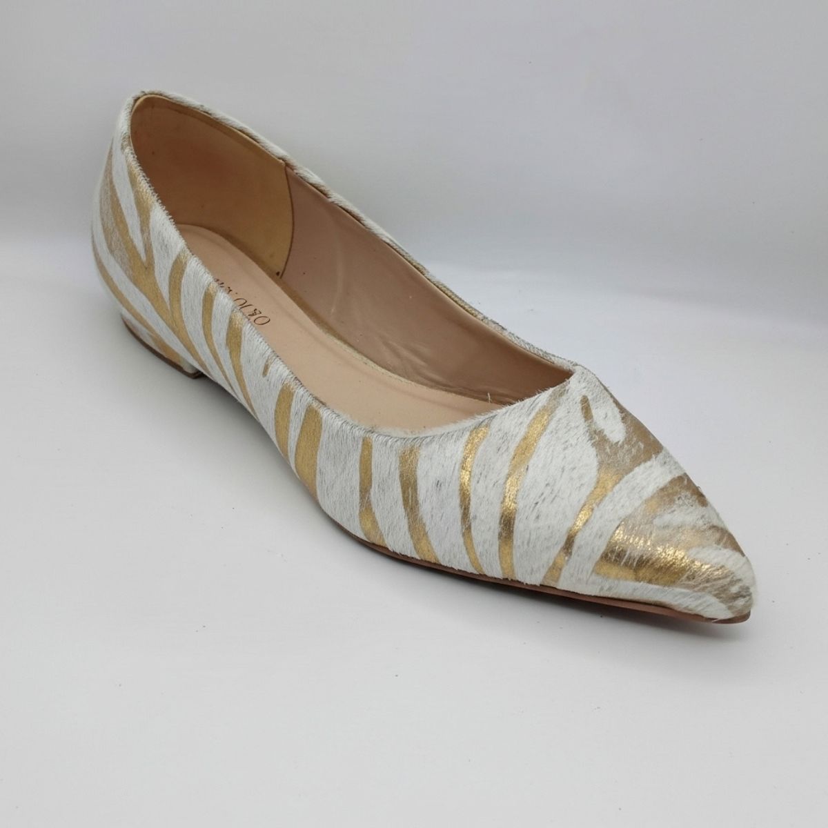 Prepare-se para se destacar com esta sapatilha flat que é puro luxo e atitude. Ela combina perfeitamente a elegância clássica do *bico fino* com a tendência ousada do animal print, resultando em um calçado que não passa despercebido.