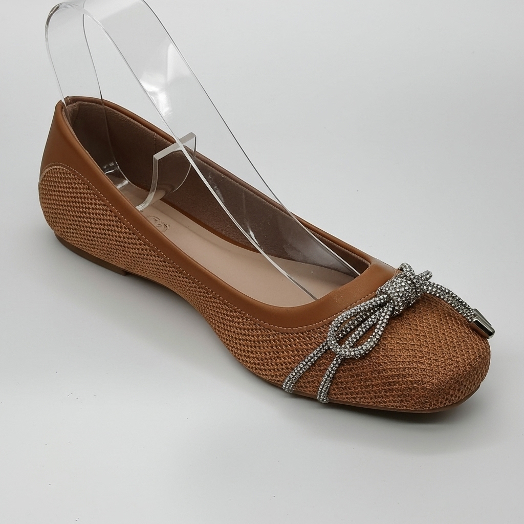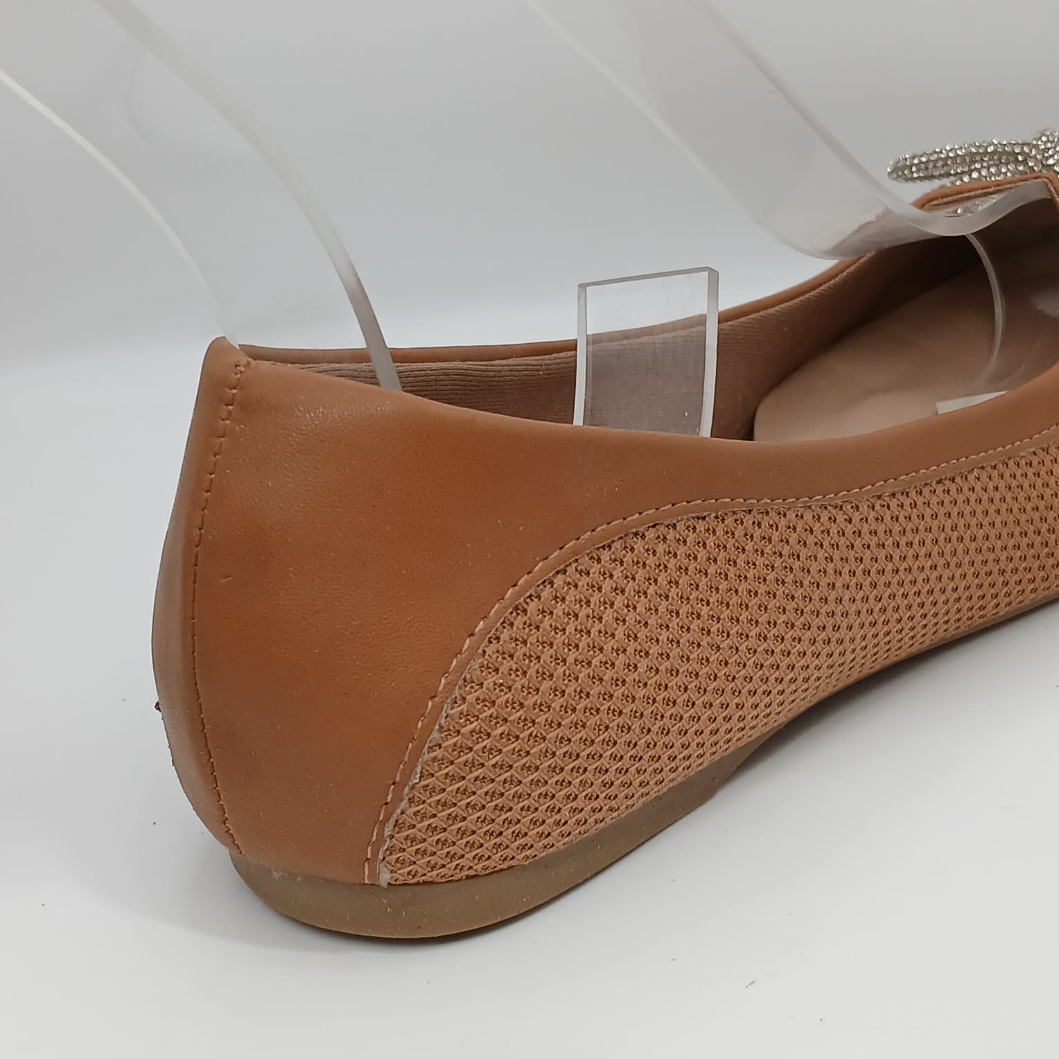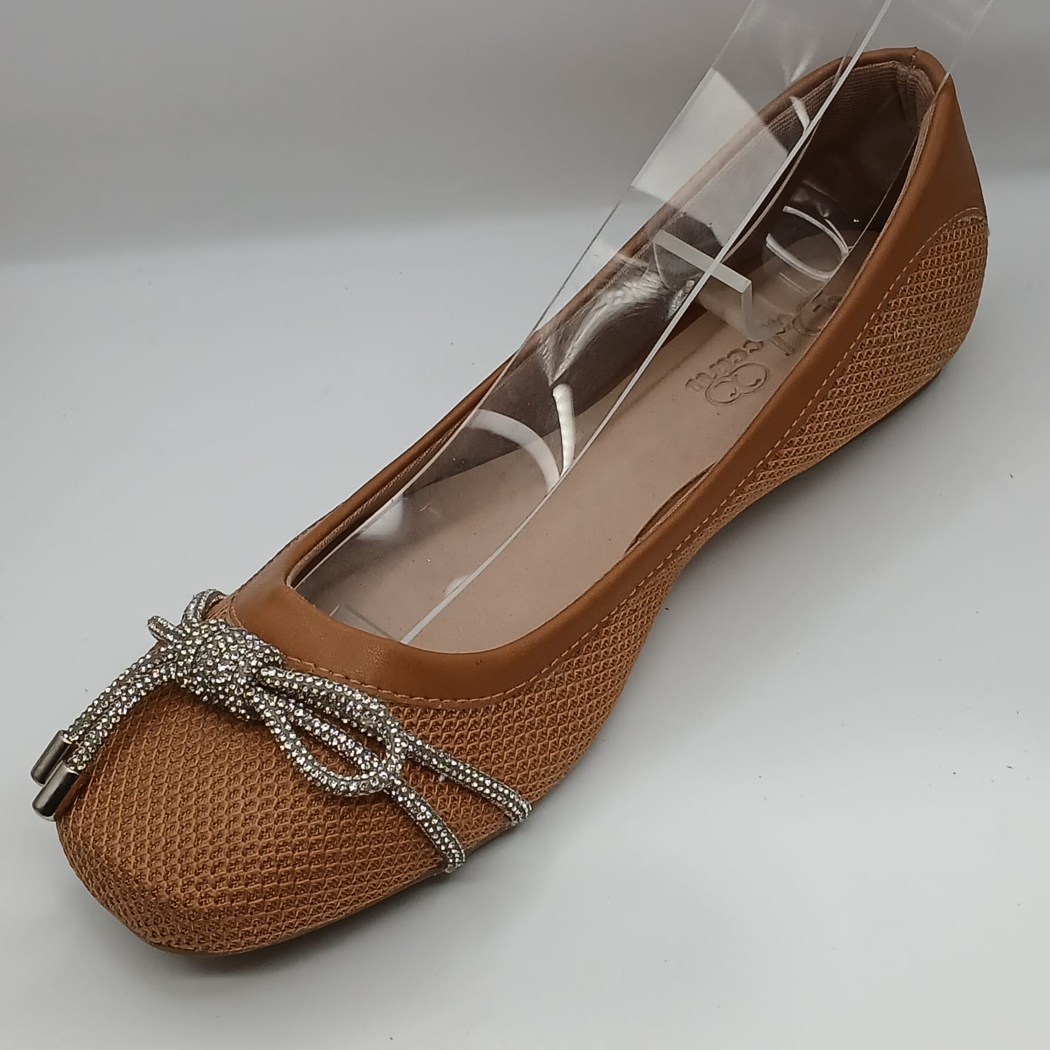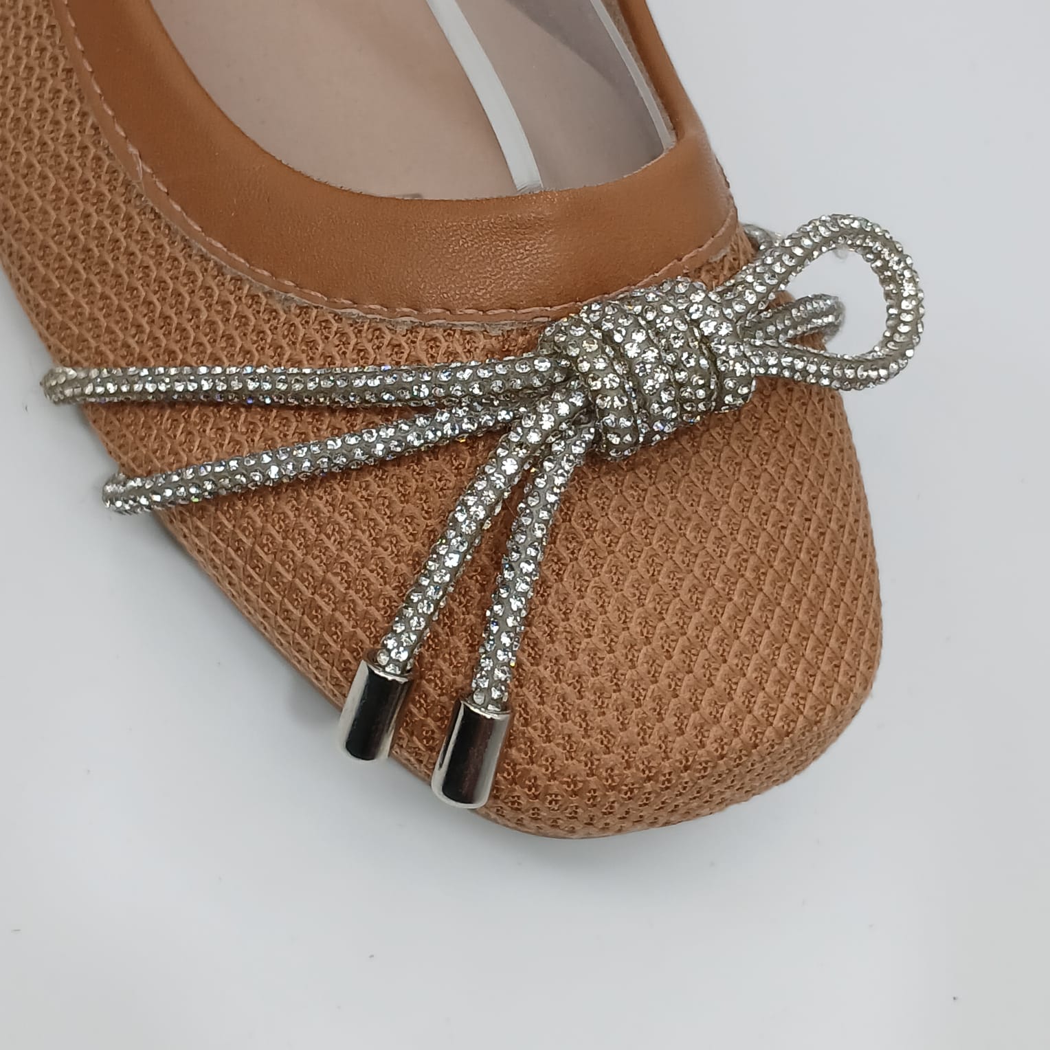 Combine o conforto do dia a dia com um toque de brilho luxuoso! Esta sapatilha é a peça perfeita para quem busca praticidade sem abrir mão de um detalhe glamouroso. Em um tom de *caramelo (ou marrom claro)* super versátil, ela se destaca pela sua construção e adorno.