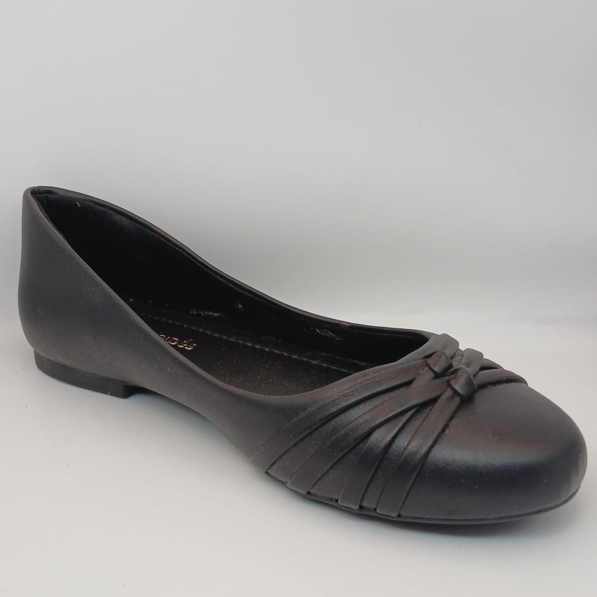 * *Design:* Elegante com bico redondo e estilo flat (rasteiro).