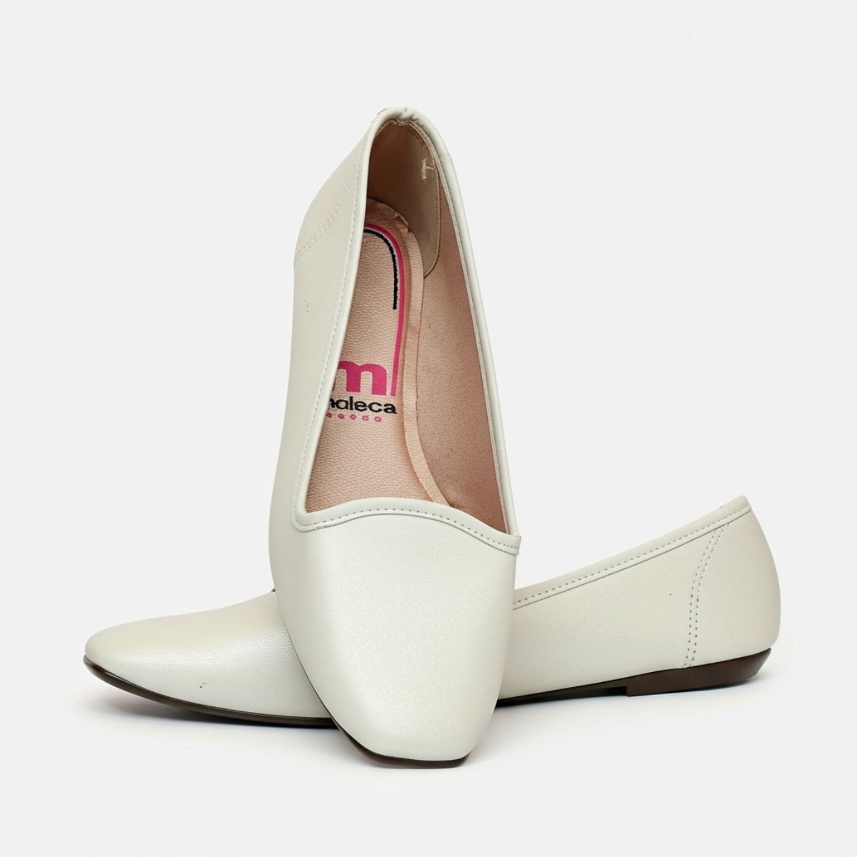 Sapatilha Moleca Bico Quadrado Off-White Clássica e Confortável