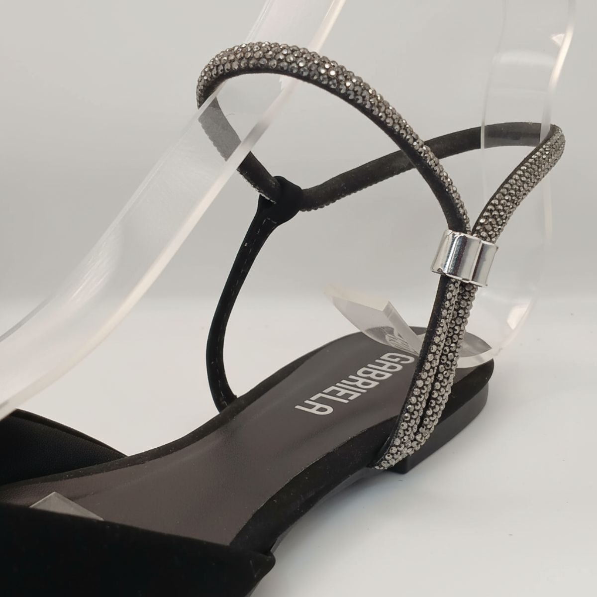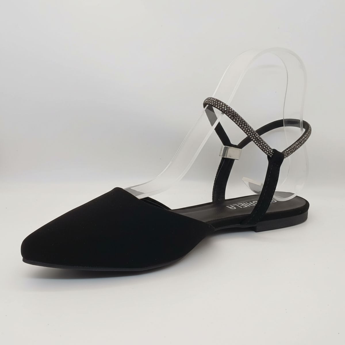 Sapatilha Slingback Gabriela Bico Fino Preta com Tiras de Strass