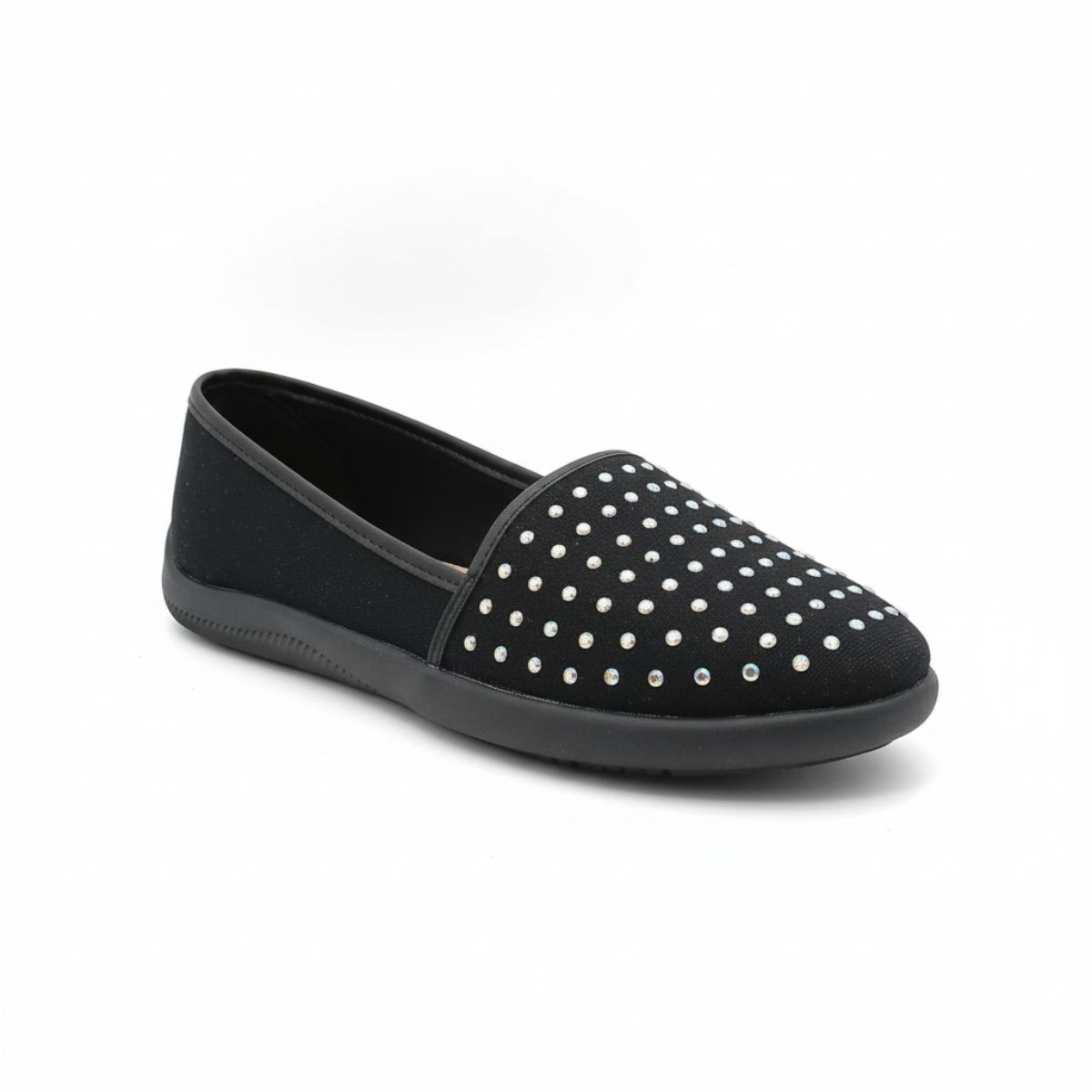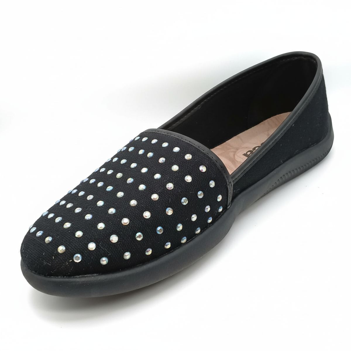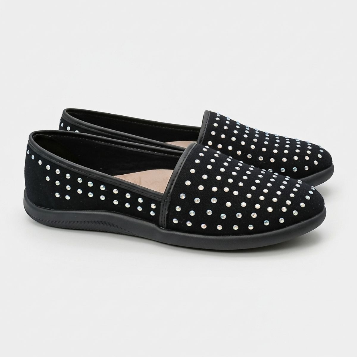 Eleve seu visual com esta sapatilha preta que combina perfeitamente conforto e um brilho espetacular. Ideal para a mulher moderna que busca praticidade sem abrir mão do glamour, este modelo slip-on é fácil de calçar e se ajusta perfeitamente aos pés.