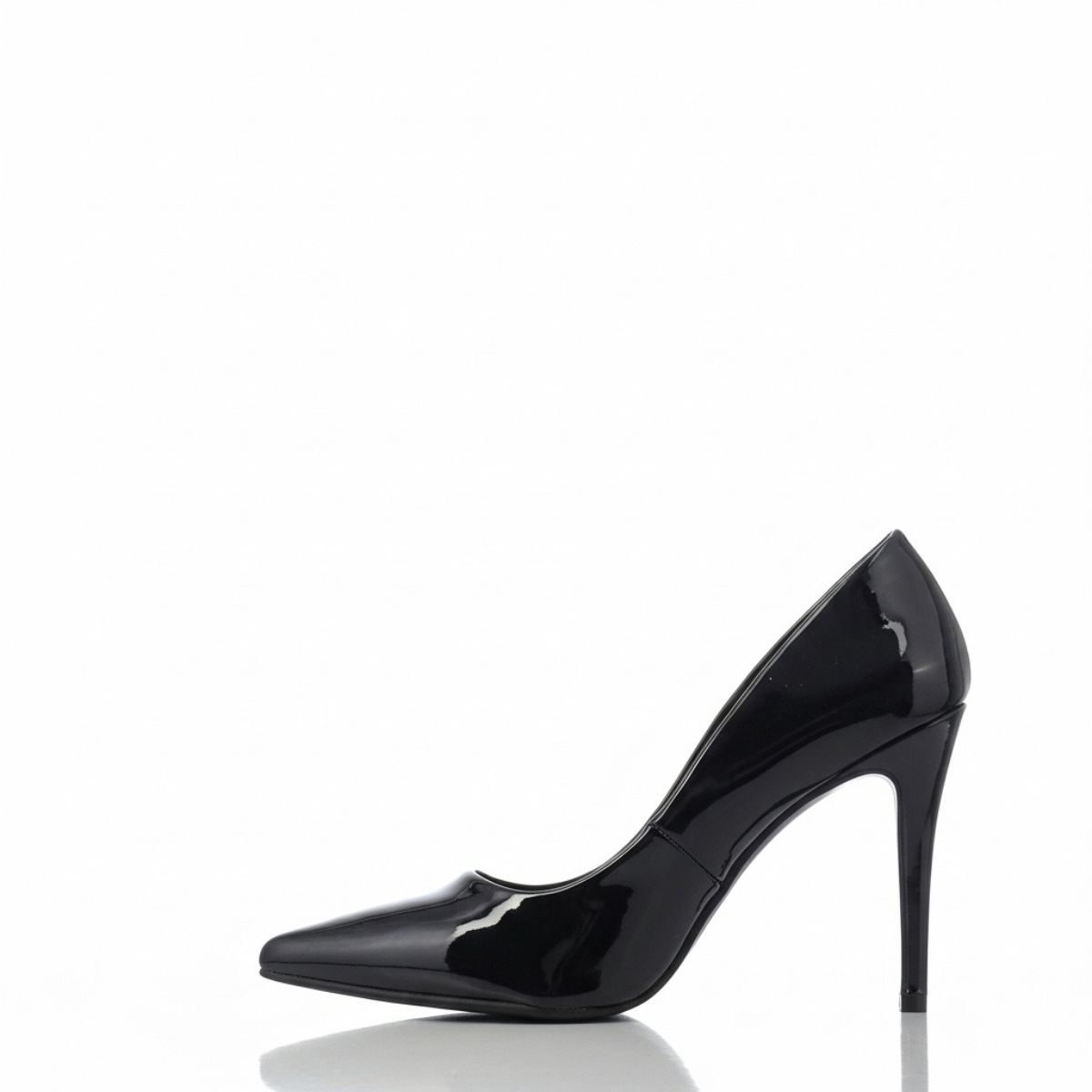 Com seu design atemporal de bico fino e salto alto fino, ele desenha uma silhueta feminina e alongada, valorizando a postura. A cor preta, unida ao brilho do verniz, torna esta peça extremamente versátil, capaz de elevar um look de escritório ou ser a estrela de uma produção para a noite.
