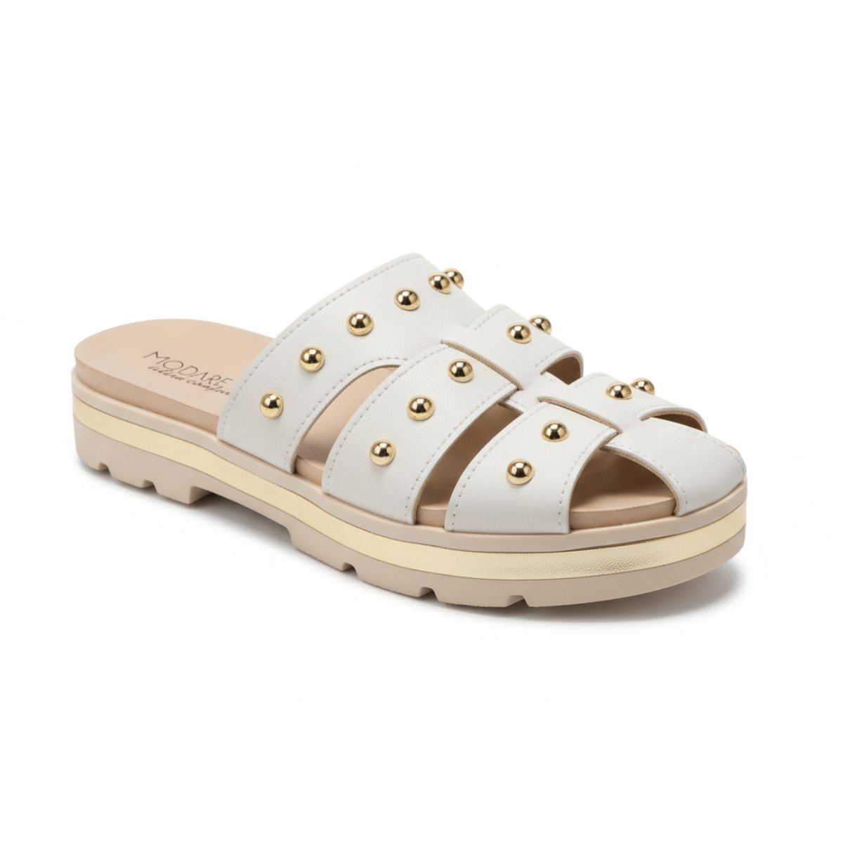 Tamanco Slide Modare Ultraconforto Off-White com Tachas Douradas