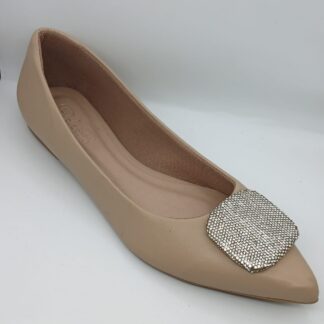 Sapatilha Bico Fino Nude com Maxi AplicaB:BPo de Strass