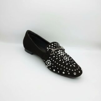 sapatilha Feminina Preto com Bridão e Aplicação de Pedrarias