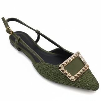 Sapatilha Slingback Verde Oliva com Maxi Fivela Dourada