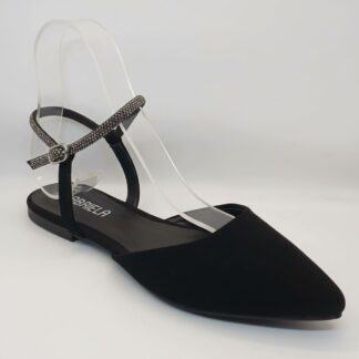 Sapatilha Slingback Gabriela Bico Fino Preta com Tiras de Strass