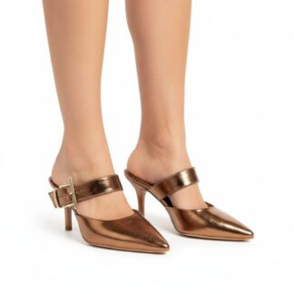 Mule Scarpin Metalizado Bronze com Fivela e Bico Fino
