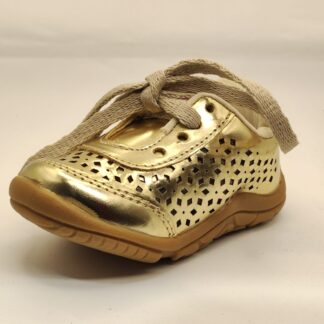 Tênis Infantil Casual Dourado Metálico com Recortes Geométricos